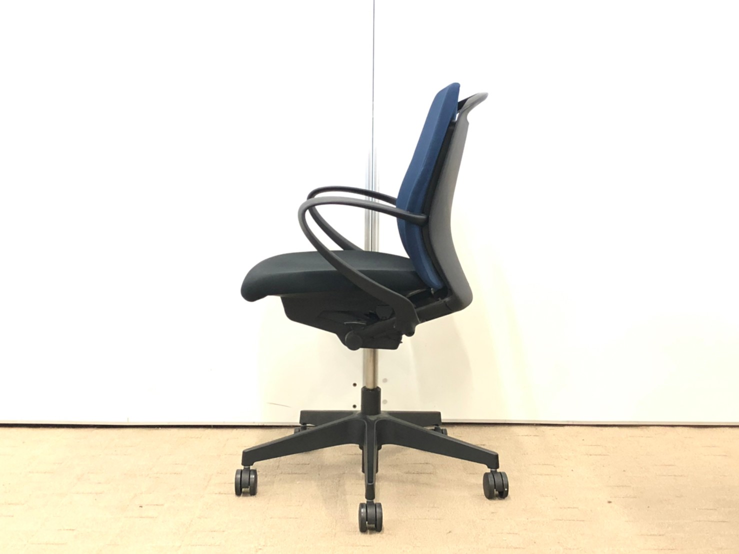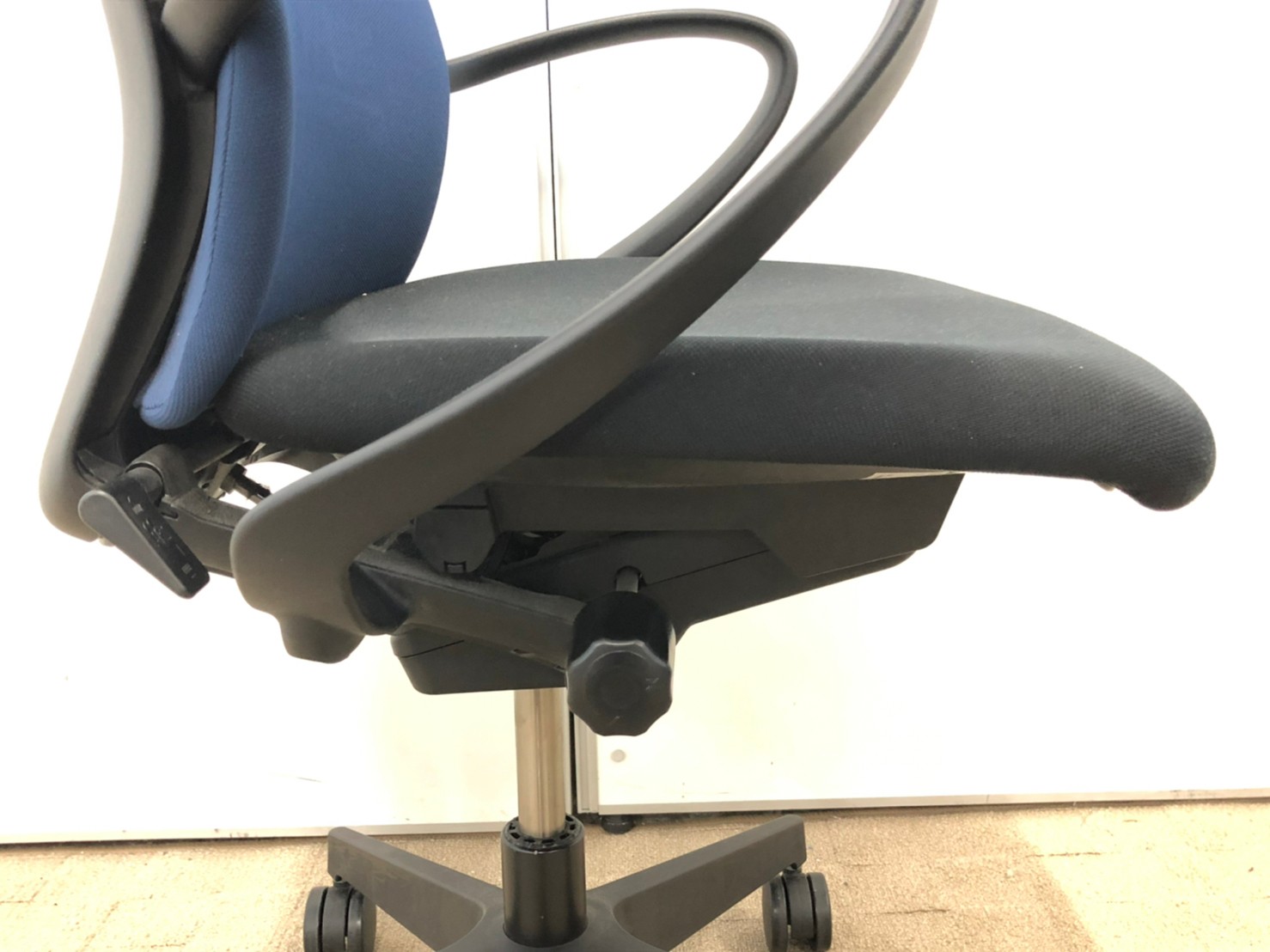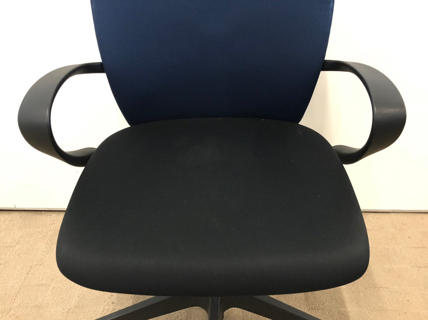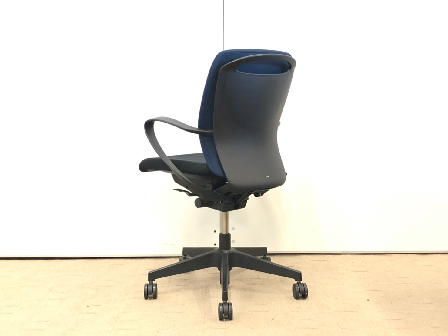 【背もたれ・座面使用感のすれあり】イトーキ製 人気高いフルゴシリーズ ブラック×ネイビーブルー 肘付きローバックチェア!!【関西倉庫在庫】