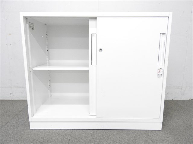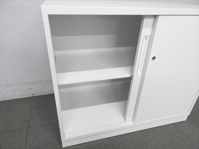 【スライド引き戸だから開閉スペースに困らない!】■コクヨ(KOKUYO)製 エディア(EDIA)シリーズ 2枚引き違い書庫 ローキャビネット シリンダー錠 天板付き ベース付き ホワイト シリンダー錠 収納 中古家具 格安 福岡 オフィス家具 九州最大級《オフィスバスターズ福岡博多店は、福岡を拠点として、日本全国へ中古オフィス用品・オフィス家具を提供しております》