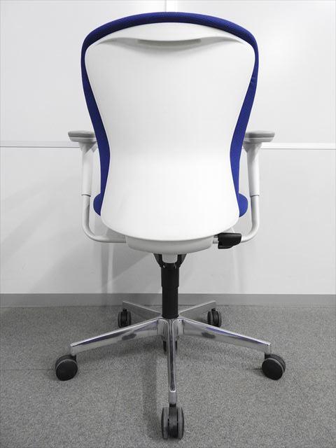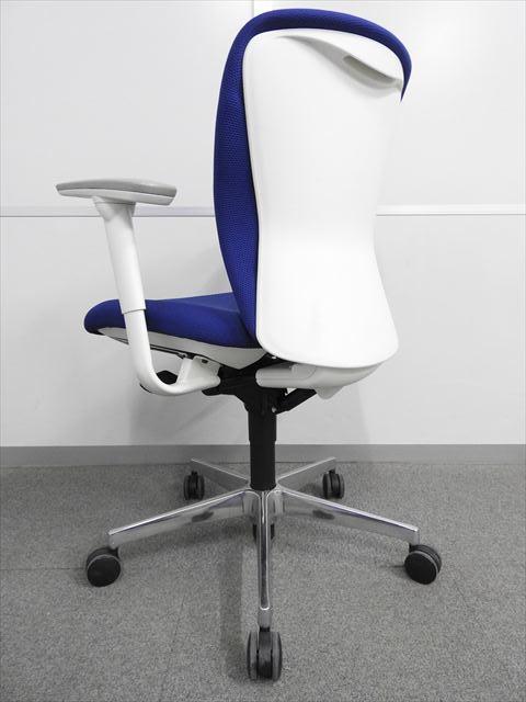 【デスクワークをサポートする快適クッション!】■オカムラ製 スラートチェア 可動肘付 ブルー ホワイトシェル アルミ脚タイプ【RP】- 品川・三田店