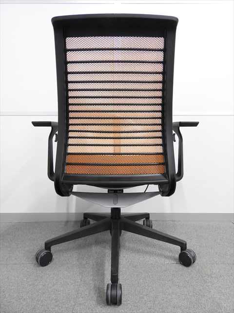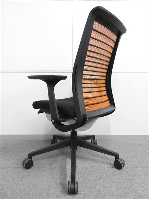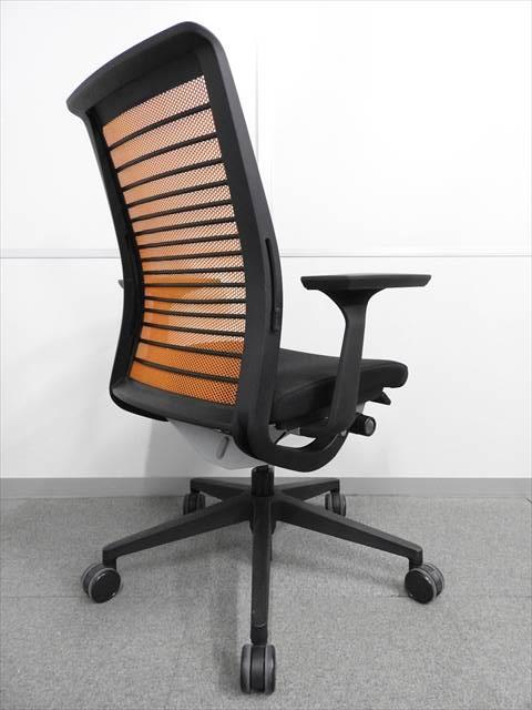 【定価約16万円】【ワイヤーが体にフィットするアメリカ発の大人気商品!長時間の着座ストレスを軽減!】 ■スチールケース(Steelcase)製 シンク(think)チェア 肘付き ハイバック ■メッシュバック ■固定肘/ランバー付 ■背面:オレンジ/座面:ブラック〈岐阜・愛知・三重・静岡・福井〉