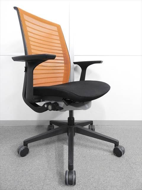 ※訳あり商品につき値下げしました!【ランバーサポート無し】■スチールケース製 シンクチェア 肘付 オレンジ ■【おつとめ品】- 川崎店