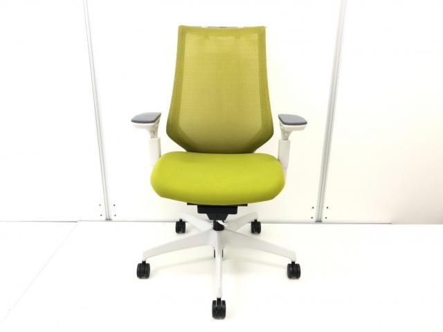 コクヨ製 デュオラ 鮮やかなイエローグリーン色 可動肘付き 【T1】【外部倉庫在庫品】