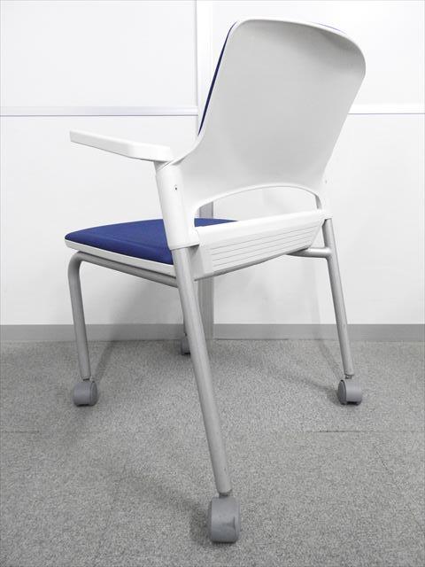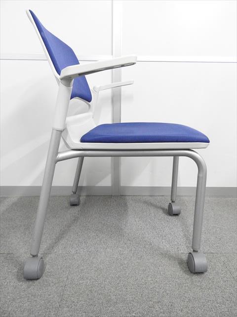 【残り2脚の為、お安く!】【キャスター付きで使いやすい!ミーティングに最適!】■ウチダ(UCHIDA)製 MF-180シリーズ スタッキングチェア ミーティングチェア ■キャスター付き ■レイズンブルー×ホワイトシェル