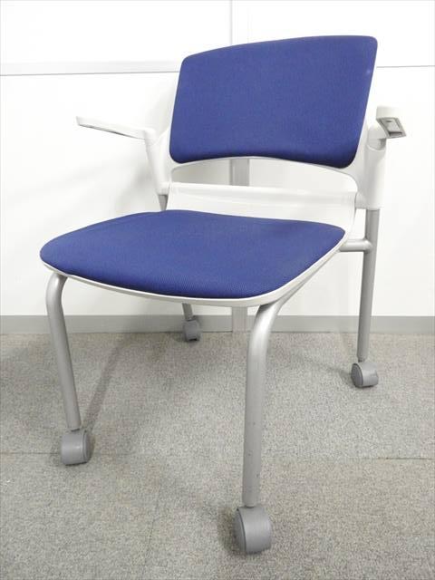 【キャスター付きで使いやすい!ミーティングに最適!】■ウチダ(UCHIDA)製 MF-180シリーズ スタッキングチェア ミーティングチェア ■キャスター付き ■ブルー×ホワイトシェル【2509】弊社使用欄【A01032801】