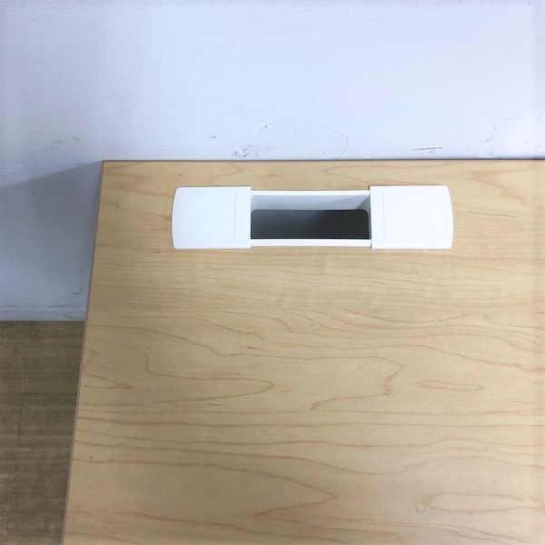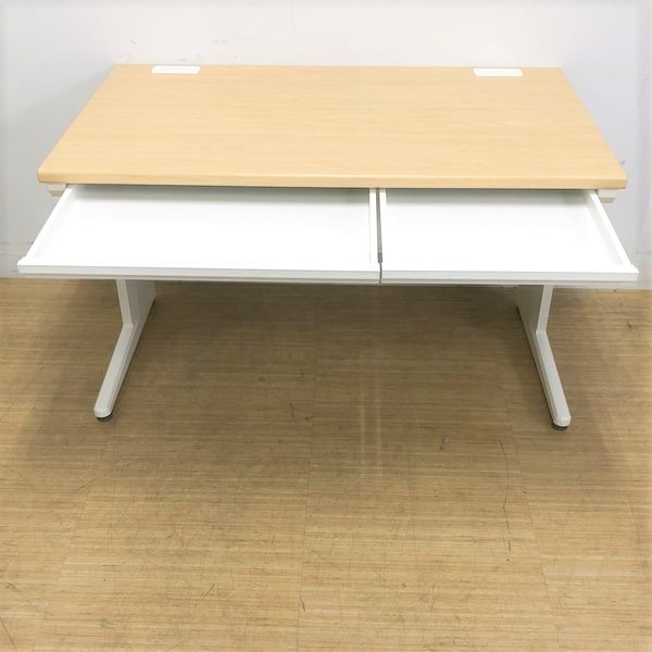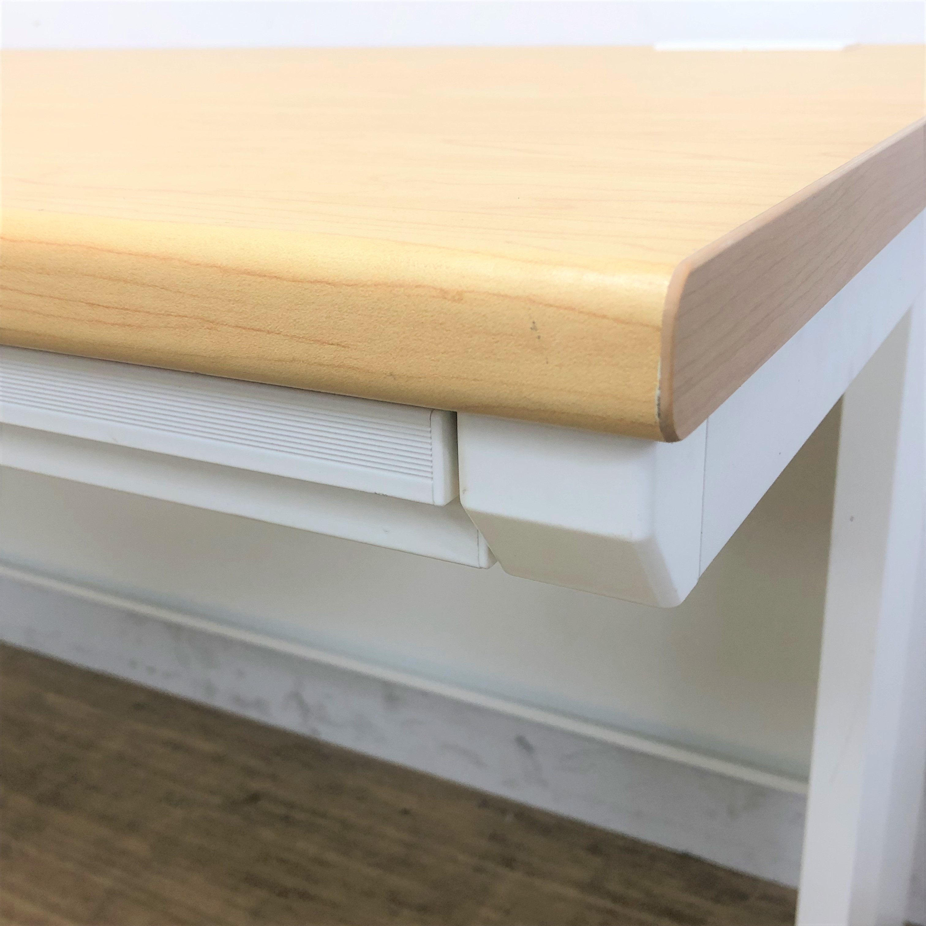 メープル調の木目天板 本体ホワイトの明るい雰囲気のデスクです
