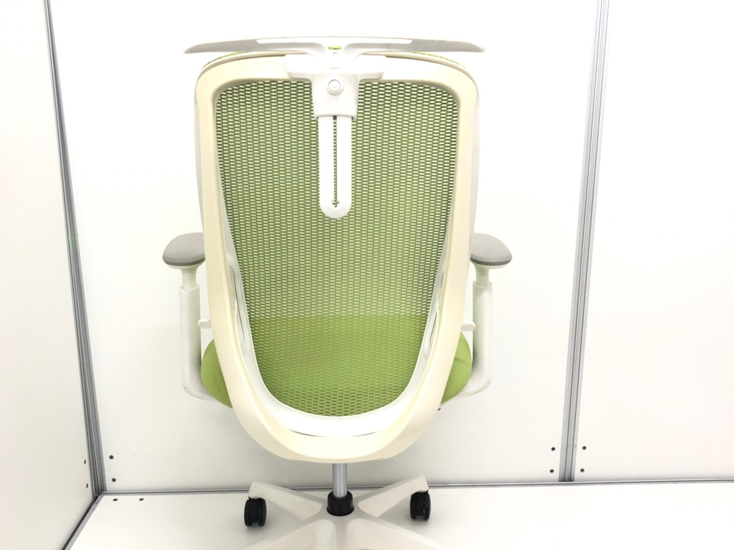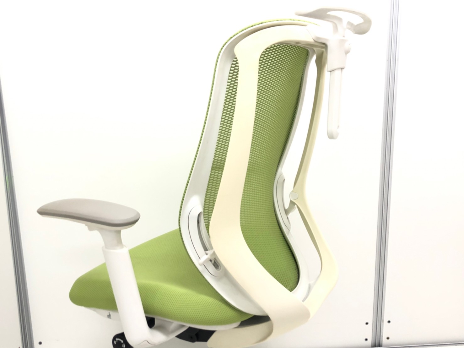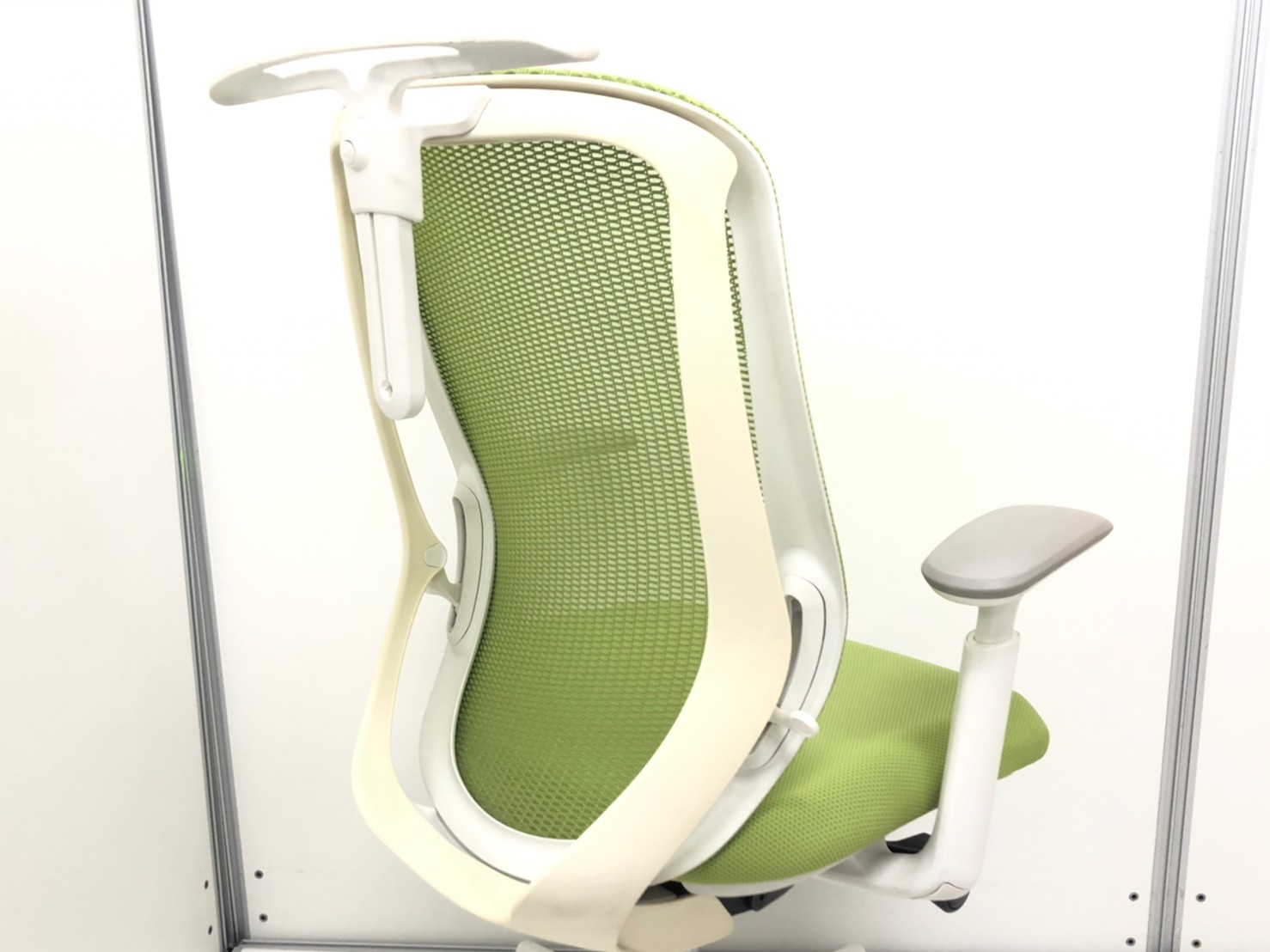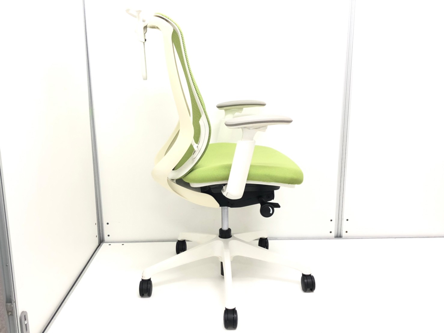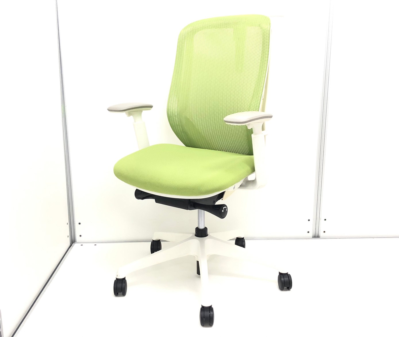 【前傾チルト機能付き】オカムラ製品で最も人気を集める高機能メッシュチェア!/オススメ(おすすめ) /人気商品【弊社使用欄:A01036032】■肘付き ハイバック 背面メッシュ ■可動肘 ■ライムグリーン×ホワイトシェル/オカムラ(okamura)製 シルフィ(Sylphy)