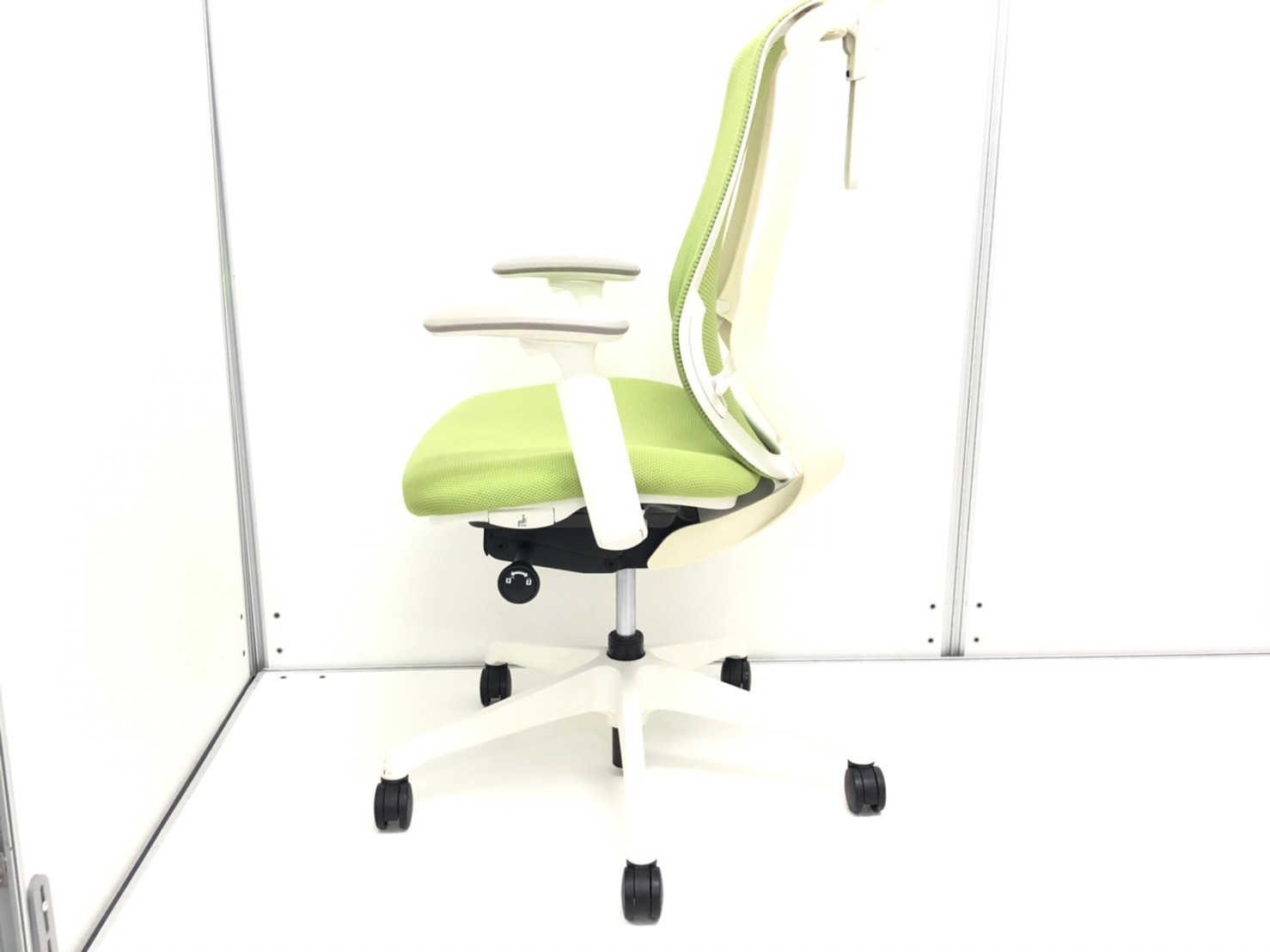 【前傾チルト機能付き!オカムラ製品で最も人気を集める高機能メッシュチェア!】■オカムラ(okamura)製 シルフィ(Sylphy)チェア ハイバック ■可動肘・ハンガー付き ■ライムグリーン × ホワイトシェル