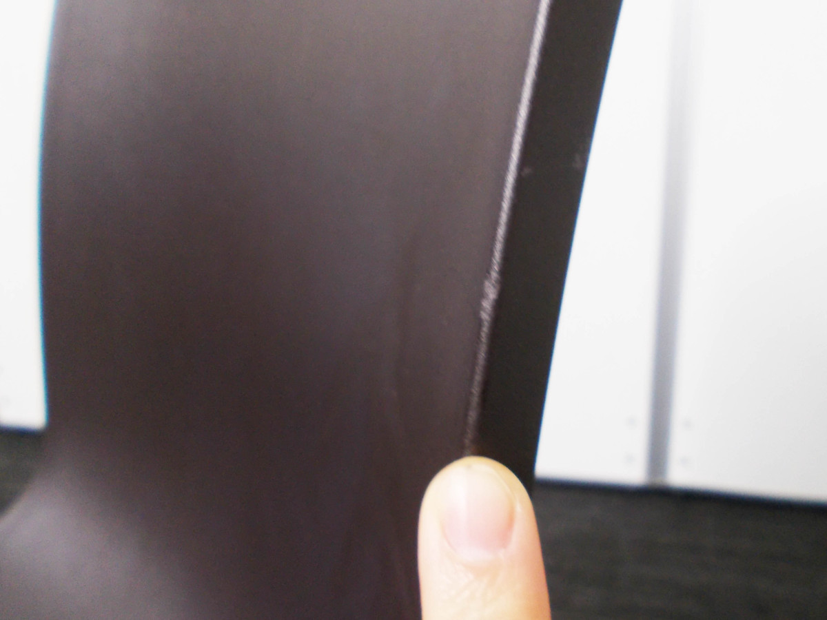 - あり黄ばみ・変色が広い範囲にうっすらある、または濃い黄ばみ・変色が一部ある。(例、座面・背もたれ、脚部等にある。)