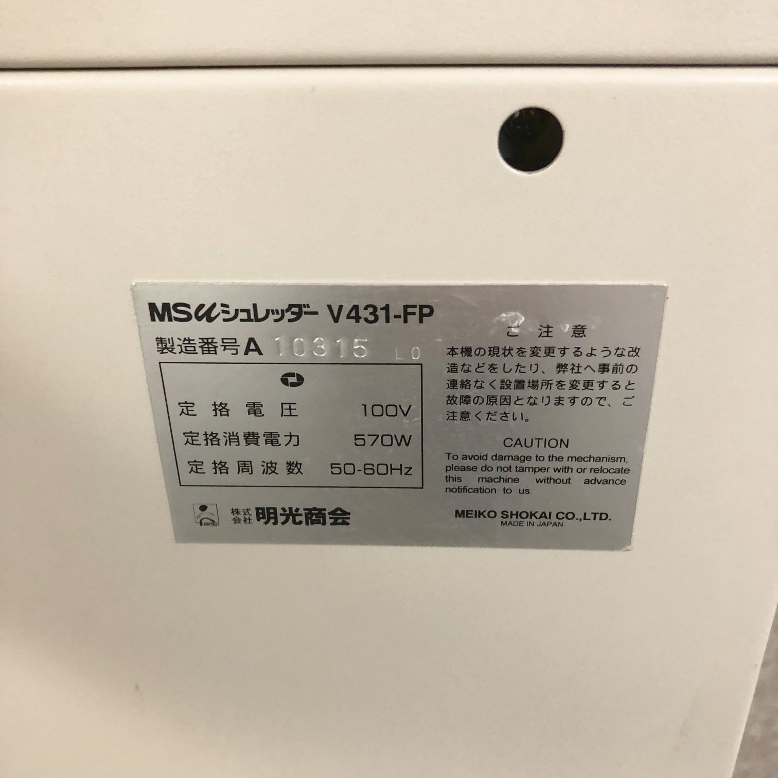 【1台限定入荷!】オフィスに必需品!明光商会製シュレッダー入荷!オフィス 家具 OA 移転 買い替え 書類整理 セキュリティ 個人情報保護 MS-V431FP- 大阪・堺店