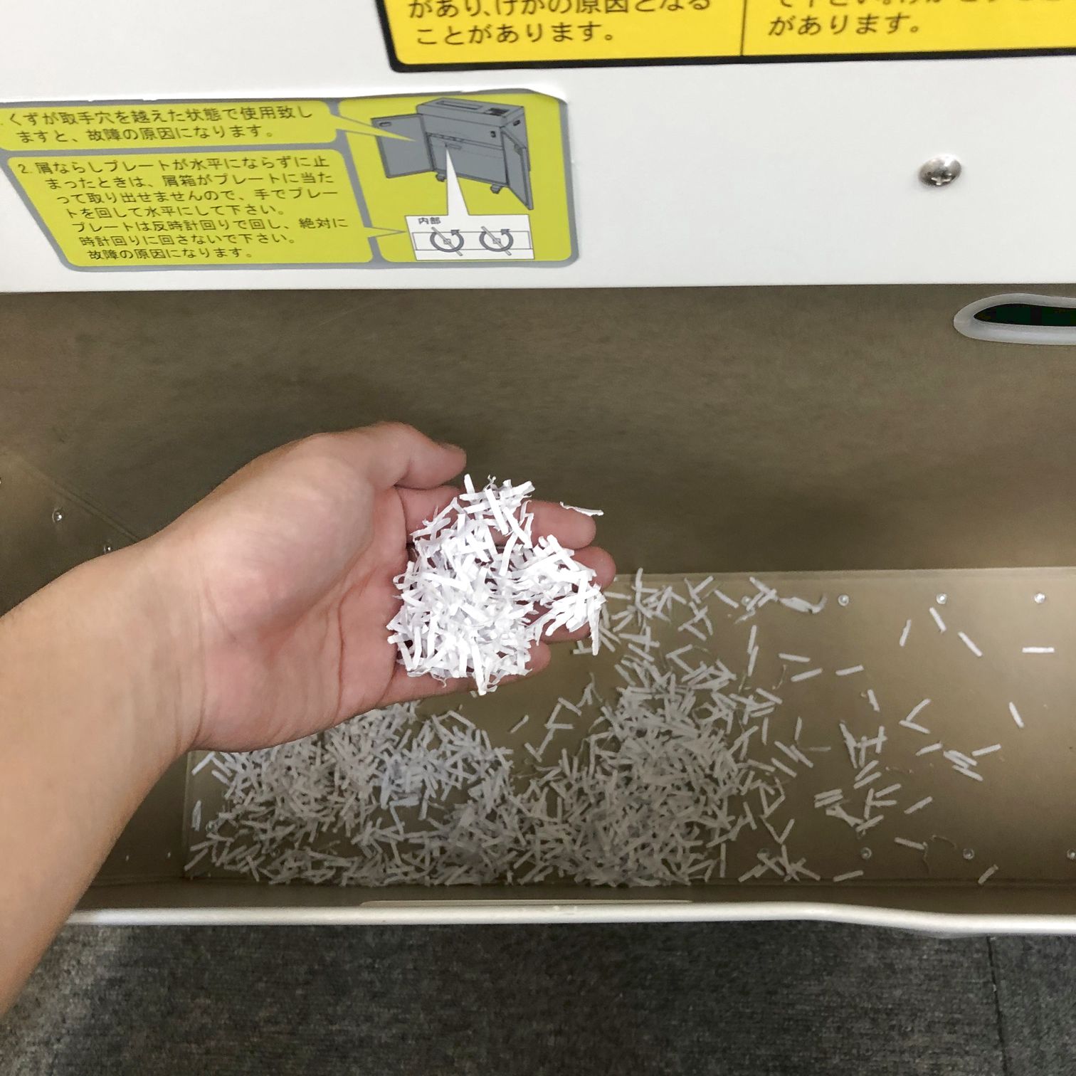 細断くずはミリ単位でチップ状に細断され、収容能力を高めます。