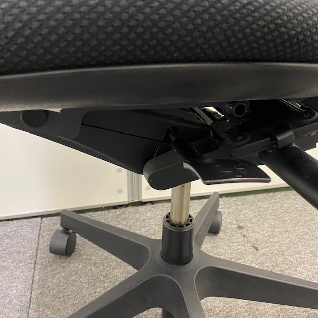 例えば、座面は、イトーキ独自の"ベンディングシート"という機構により、クッション、インターシェル、空洞という三層構造になっています。 この真ん中に挟まっているインナーシェルが、着座時の姿勢に合わせて体重を分散してくれるので、どんな姿勢でも体になじみ、疲労を軽減してくれます。 さらに、座面は前後に4センチほど奥行きを調整でき、前傾姿勢で座りたい、深く腰掛けたい、膝裏を圧迫されたくないなど、個人の好みに合った快適さにカスタマイズが可能となっています。