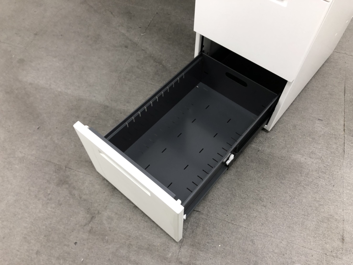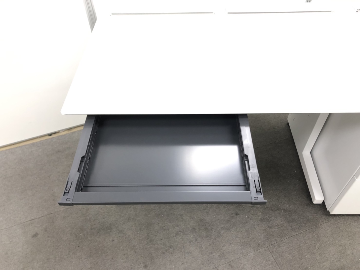 コクヨ/KOKUYO isシリーズ 疑似的な片袖机(平机+2段ワゴンのセット) ホワイト センター引出し付 W1400のゆったり使用できるサイズ感