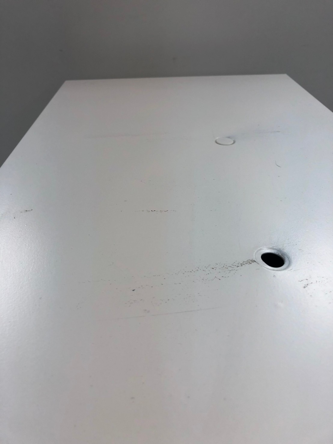 - 目立つ箇所あり傷・凹みが多数、深い傷・凹みが一部ある。(例、天板、正面、背部、サイド部分にある。)