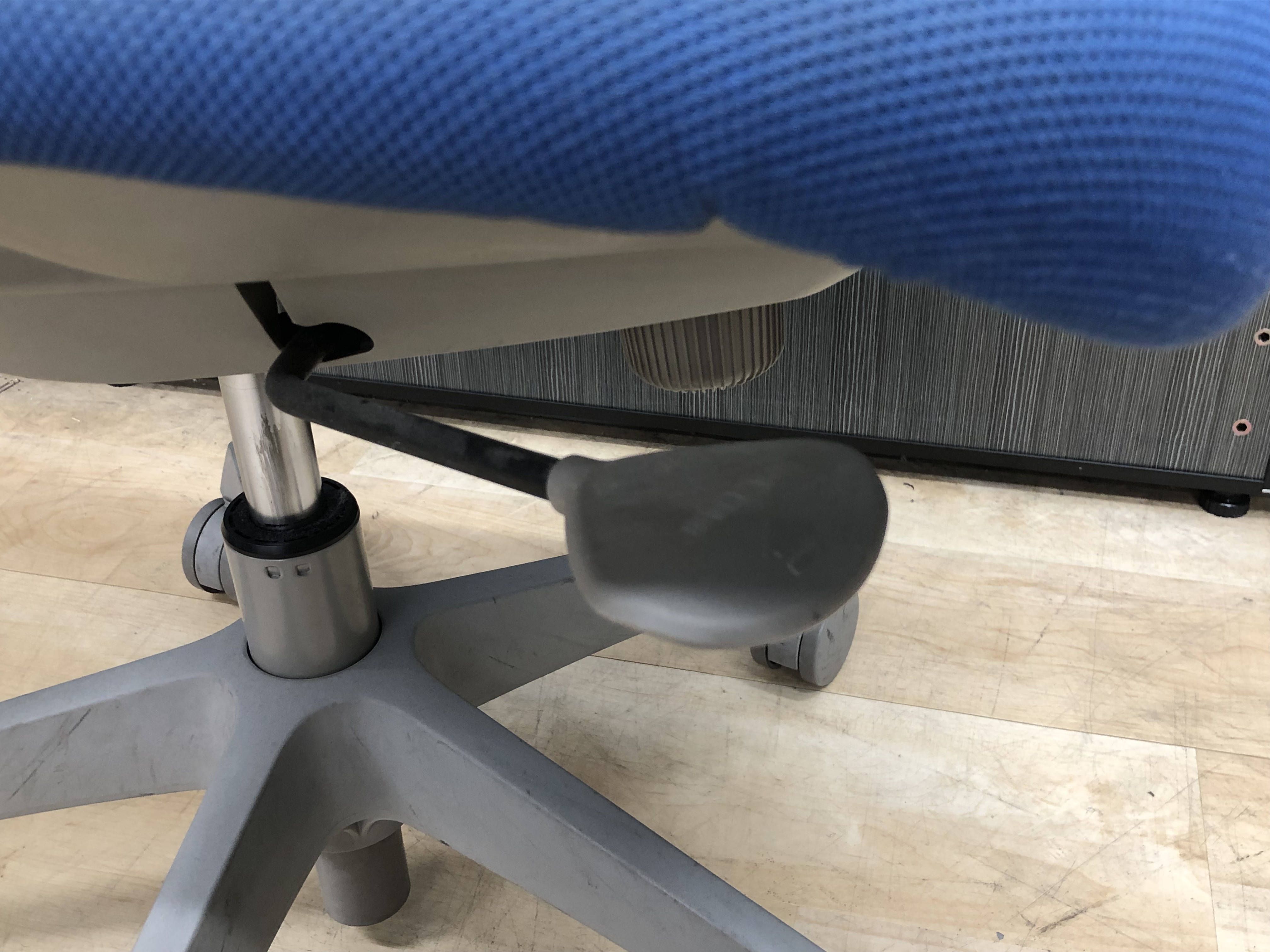 なので、「どれでも同じでしょう」と過小評価されがちですが、さすがのオカムラ製!座面の無段階上下調整やリクライニングの反発の強さ調整などに加え、リクライニンする際に足首の位置を支点にして動く、アンクルチルトリクライニングという特殊な機構が搭載されています。「人間が寄りかかる動き」にぴったりとフィットし、快適さをもたらしてくれます。