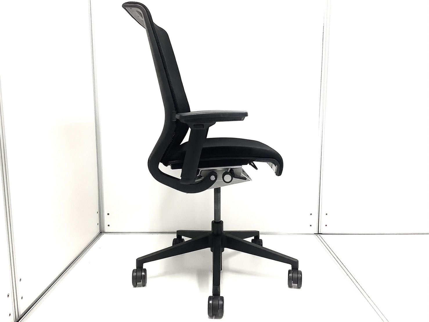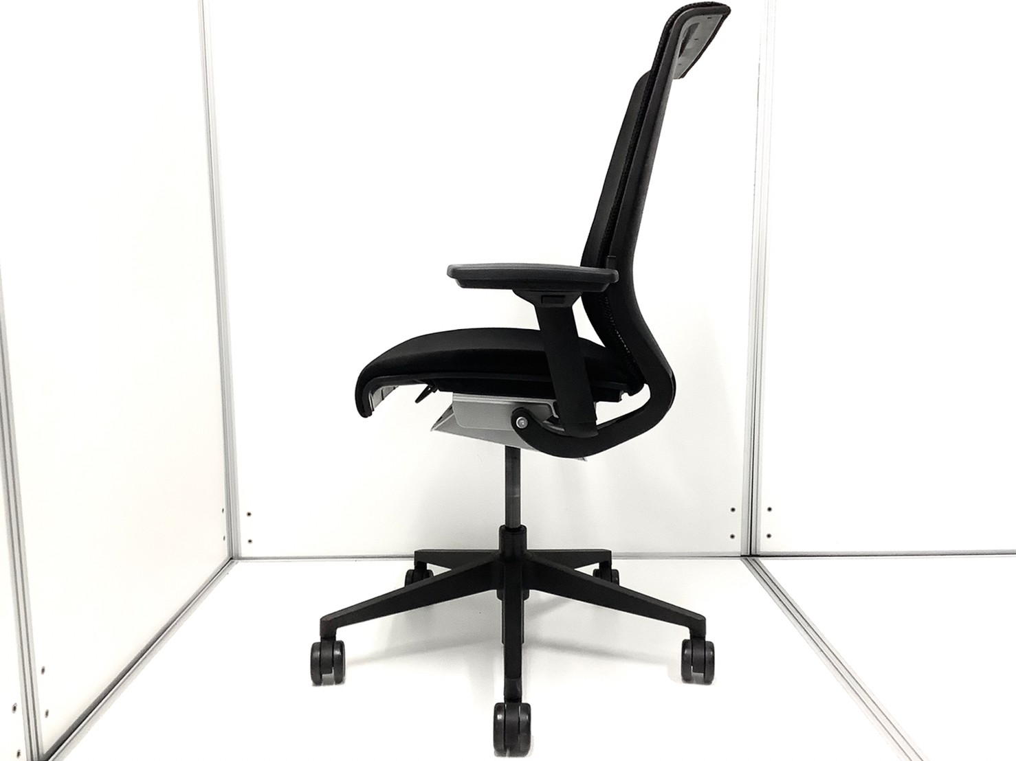 快適な座り心地に不可欠な調節機能である、上下昇降、座面の奥行き調整、リクライニングなどを備えており、操作もわかりやすく好評です。 特に、座面の奥行きは、座面下の左右に通った細いバーで調整でき、座ったままで軽やかに滑るように調整が可能です。 価格面では、新品では高めですが、中古は流通も多く、定価の3割前後の価格で高級チェアの座り心地を手に入れることができます!