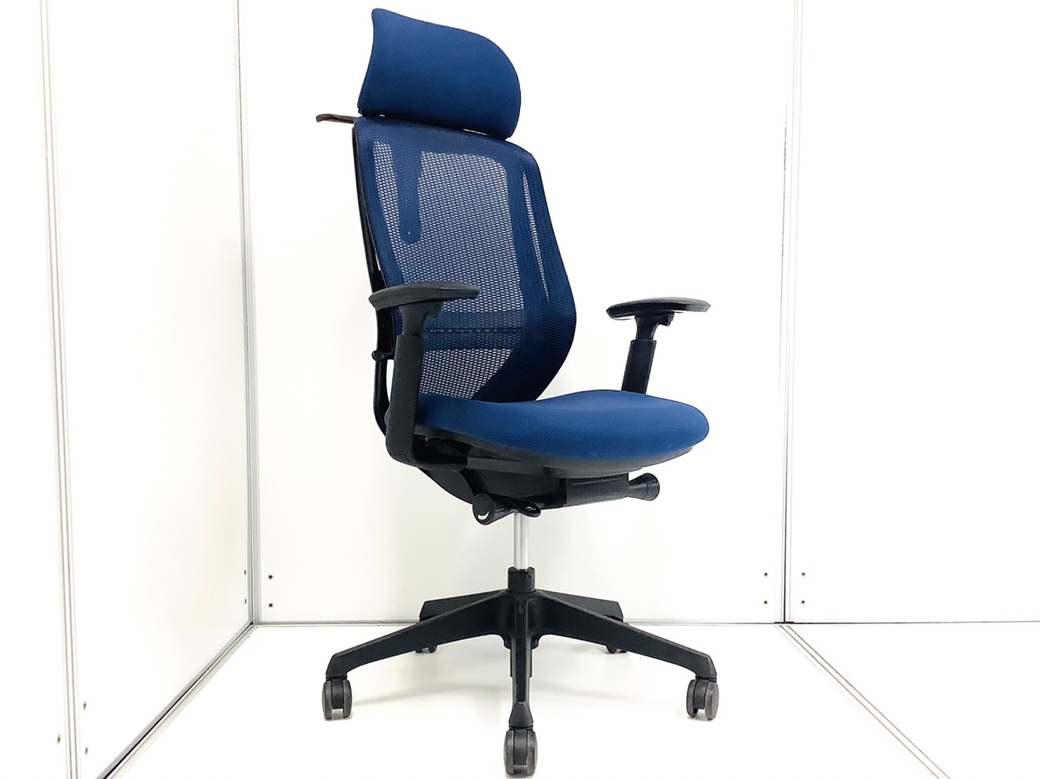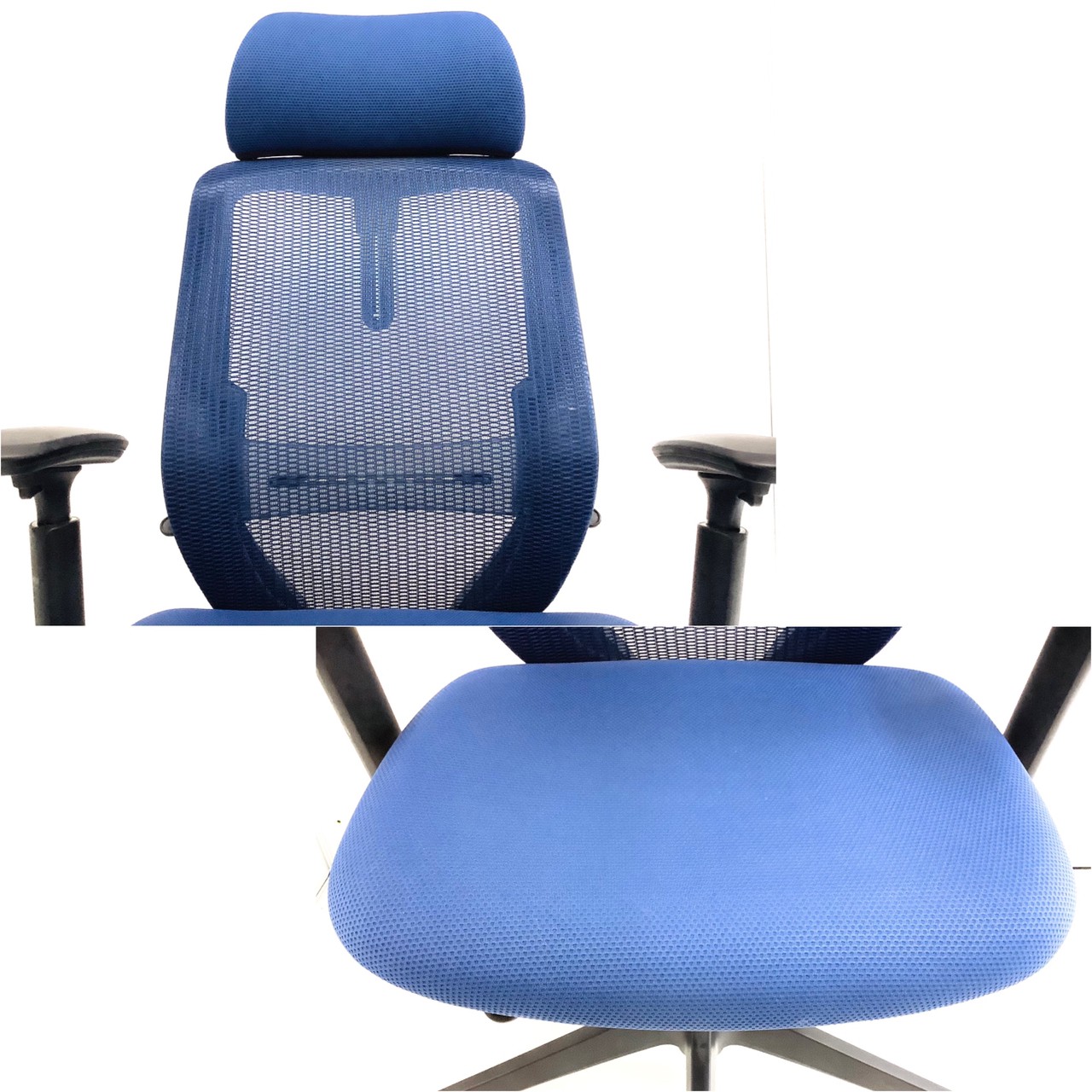 【新品ヘッドレスト交換済み】オカムラ/シルフィー/ブルー/可動肘