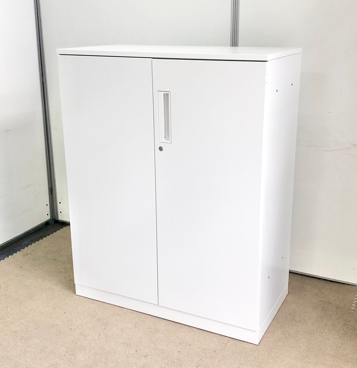 【収納物がひとめで分かる両開き戸タイプ!】■コクヨ(KOKUYO)製 エディア(EDIA)シリーズ 両開き書庫 ローキャビネット H1130㎜ ■天板・ベース付 ■ホワイト ■シリンダー錠