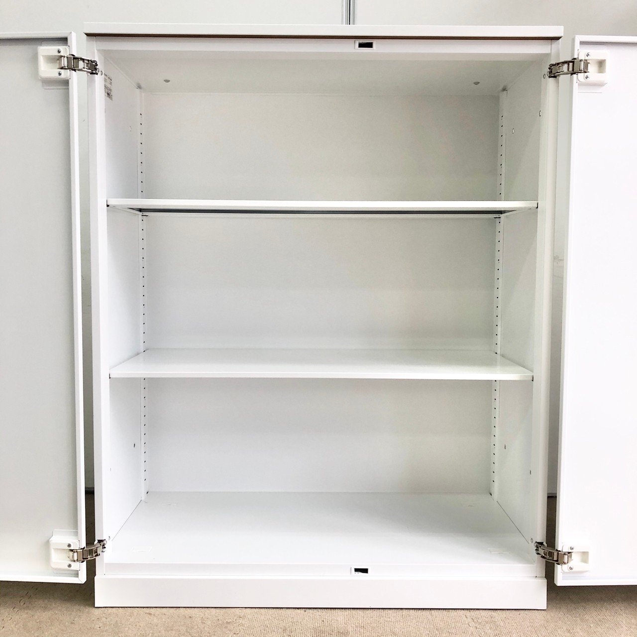 コクヨ製 エディアシリーズ ホワイト シリンダー 施錠 収納物がひとめで分かる両開き戸タイプ! ローキャビネット 両開き書庫!!【関西倉庫在庫】 【弊社使用欄:A01048871】