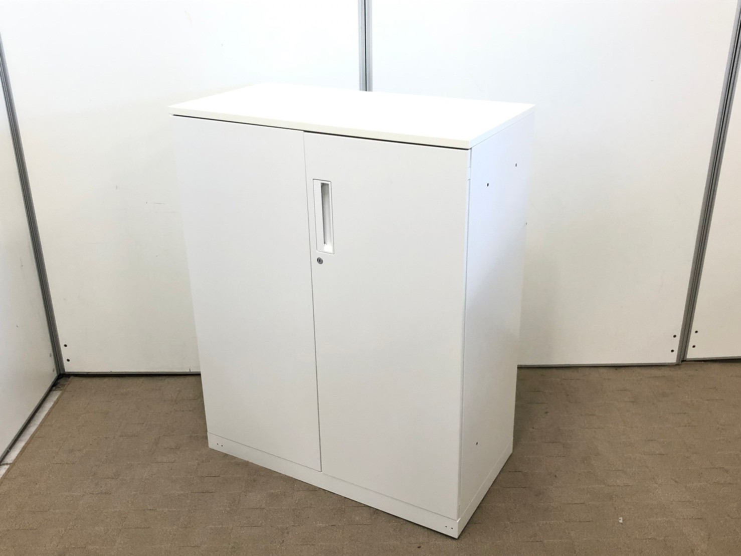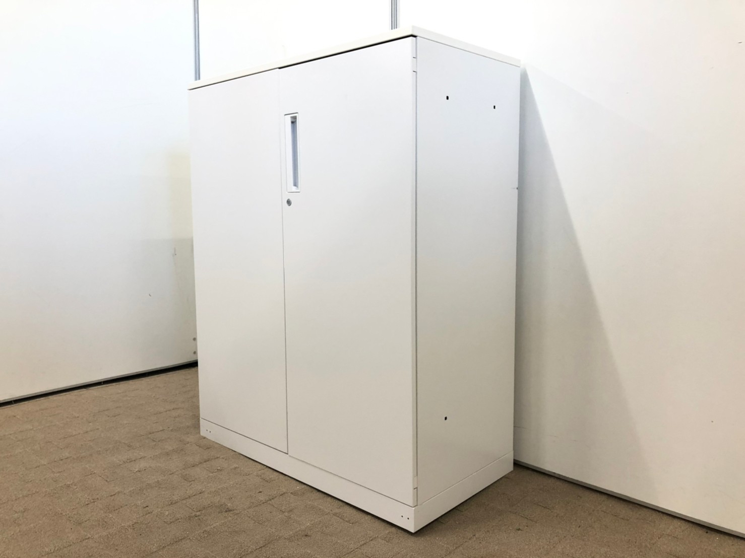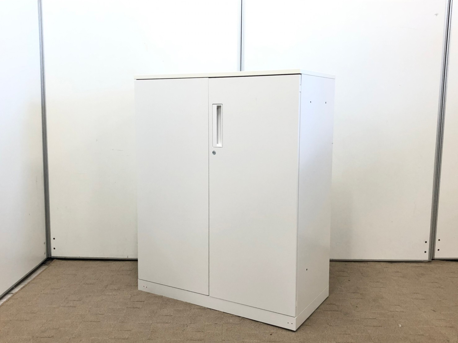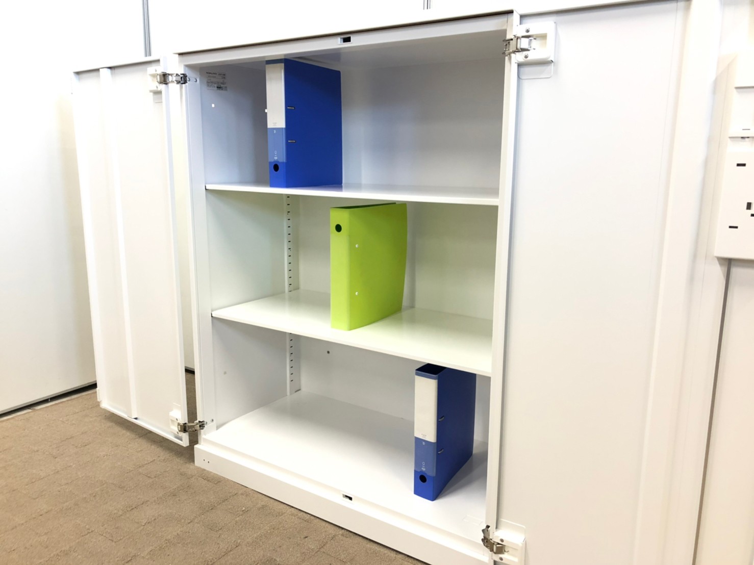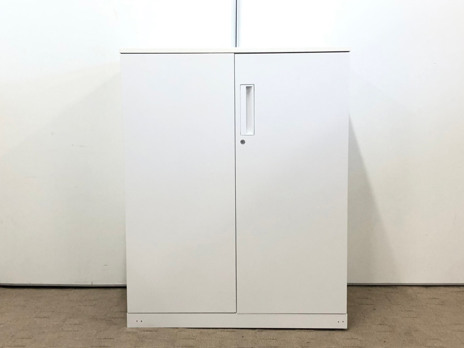 【収納物がひとめで分かる両開き戸タイプ!】■コクヨ(KOKUYO)製 エディア(EDIA)シリーズ 両開き書庫 ローキャビネット H1130㎜ ■天板・ベース付 ■ホワイト ■シリンダー錠【IB】