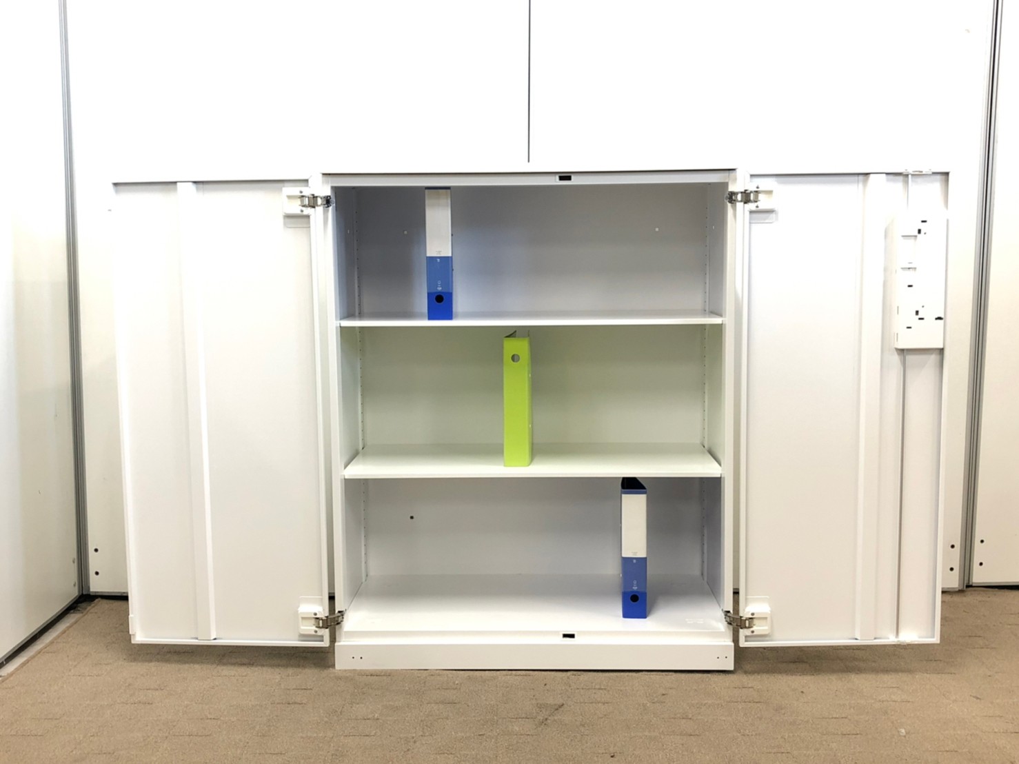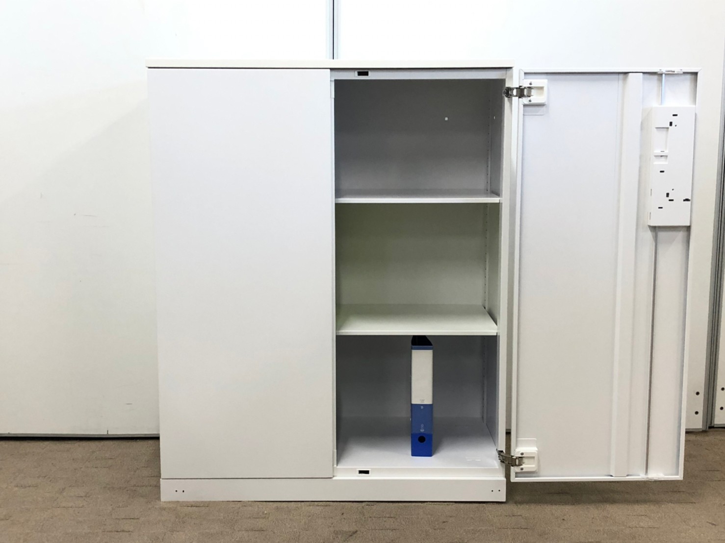 【収納物がひとめで分かる両開き戸タイプ!】■コクヨ(KOKUYO)製 エディア(EDIA)シリーズ 両開き書庫 ローキャビネット H1130㎜ ■天板・ベース付 ■ホワイト ■シリンダー錠