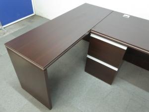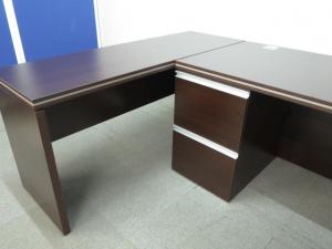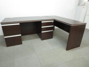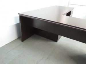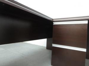 【L字型デスクのように使えます!】■役員用木製両袖机+サイドテーブルセット ダークブラウン ■デスクサイドで打合せもできるデザイン!【メーカー在庫】【RP】- 品川・三田店