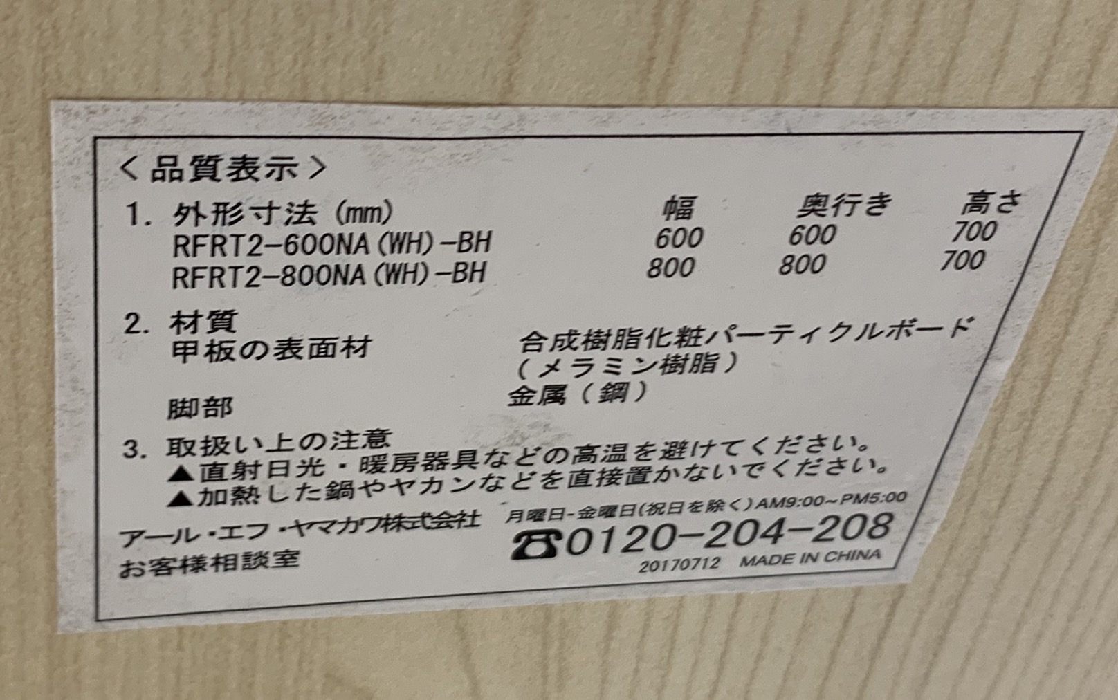 - 壊れている天板歪み、アジャスター無し、キャスター使用不可のようにそのテーブルの本来の効用を果たすための機能に不具合がある。