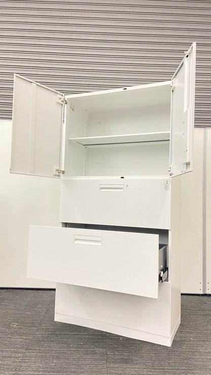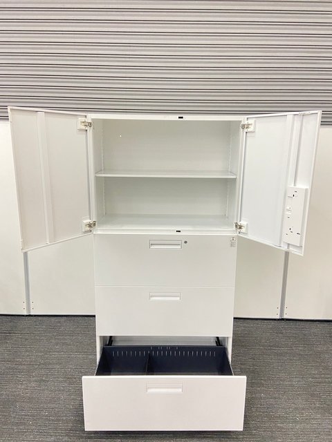 3段ラテラル(引出)と両開き(観音開き)の上下書庫セットが入荷しました。
