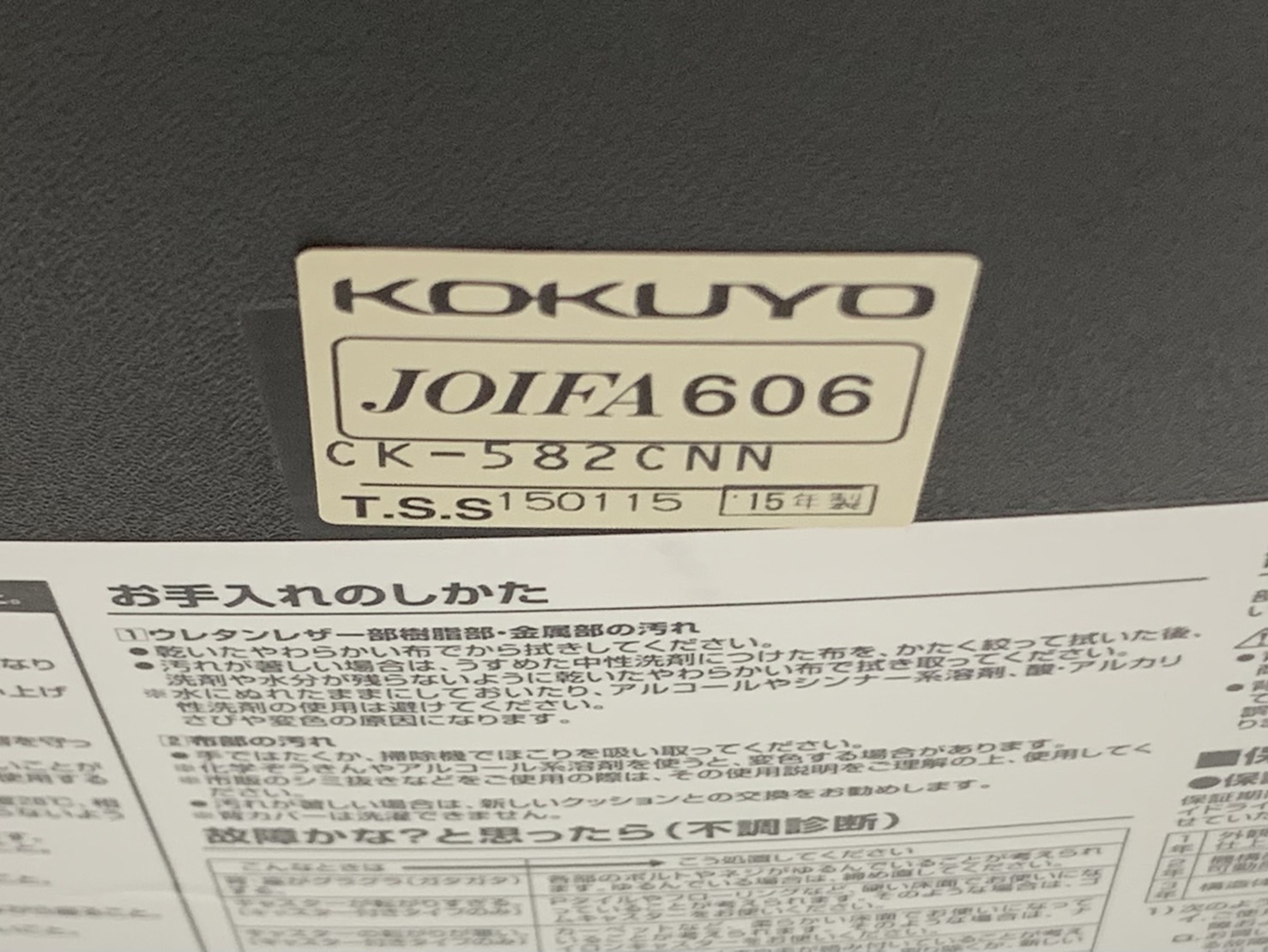 - 若干あり傷・破れ・ほつれ・へたり・しわが一部ある。(例、座面・背もたれ、脚部等にある。)