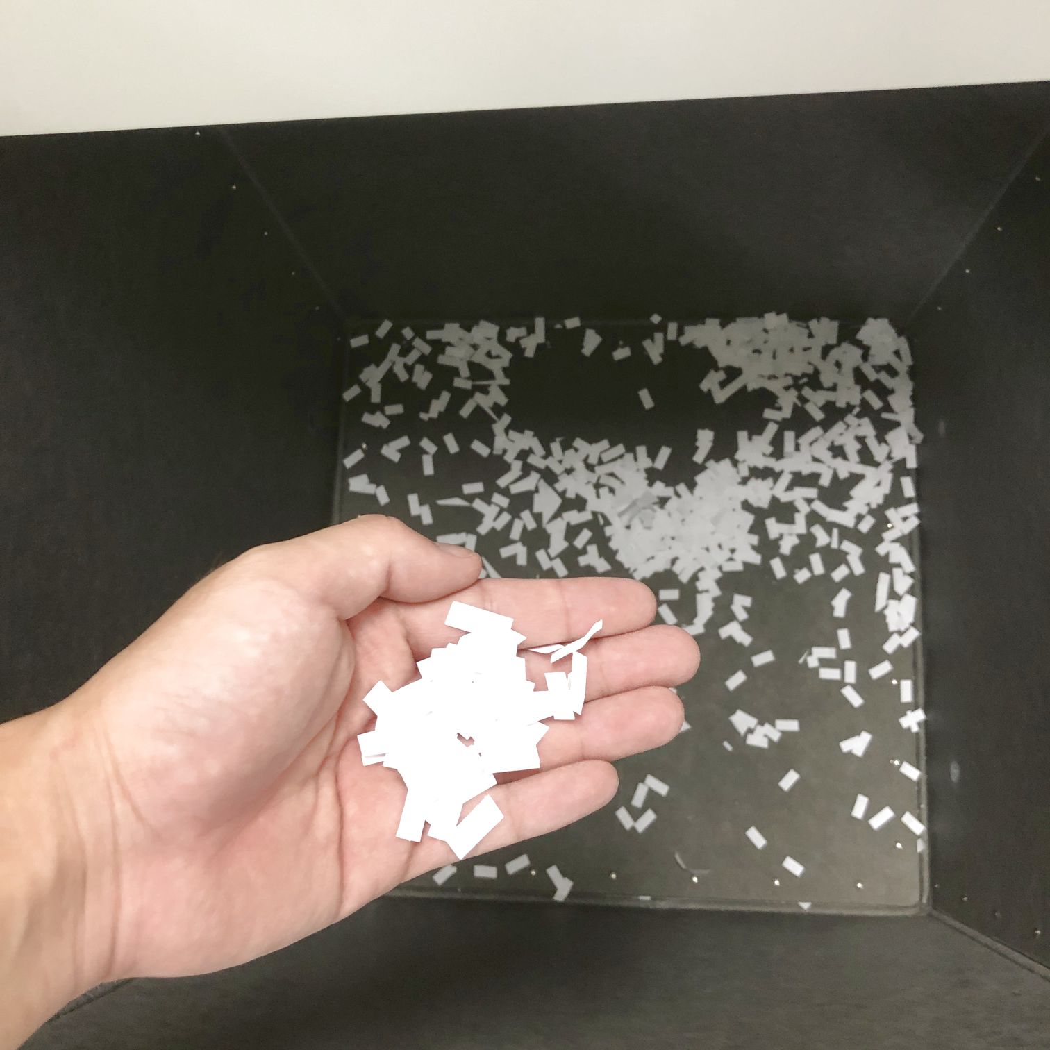 2つのカッターで縦横に切ることでクズがフラットになり、クズ箱に効率よく収容できます。