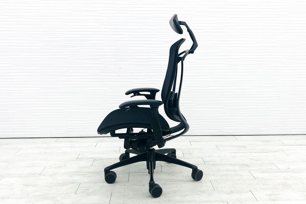 【世界で認められた革新的タスクチェア!人間工学に基づいた快適な座り心地を実現!】■オカムラ(okamura)製 コンテッサ(Contessa)チェア ハイバック 肘付き 背面メッシュ ■可動肘・ランバーサポート付 ■ブラック ※肘スレ有