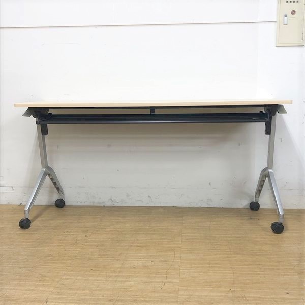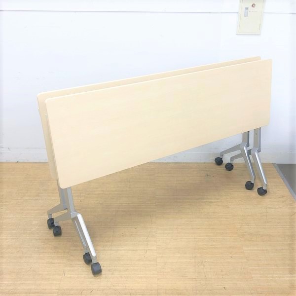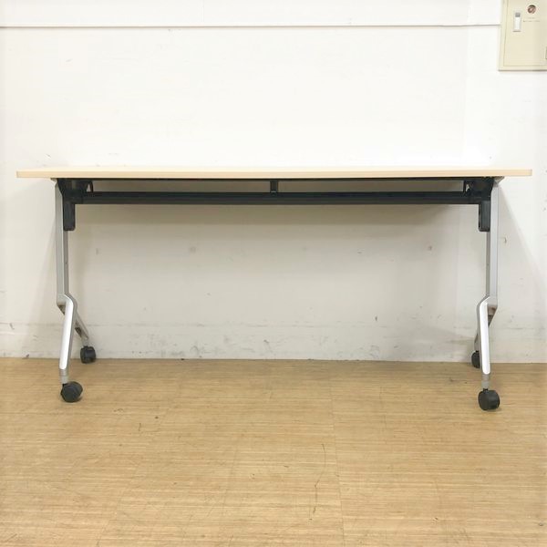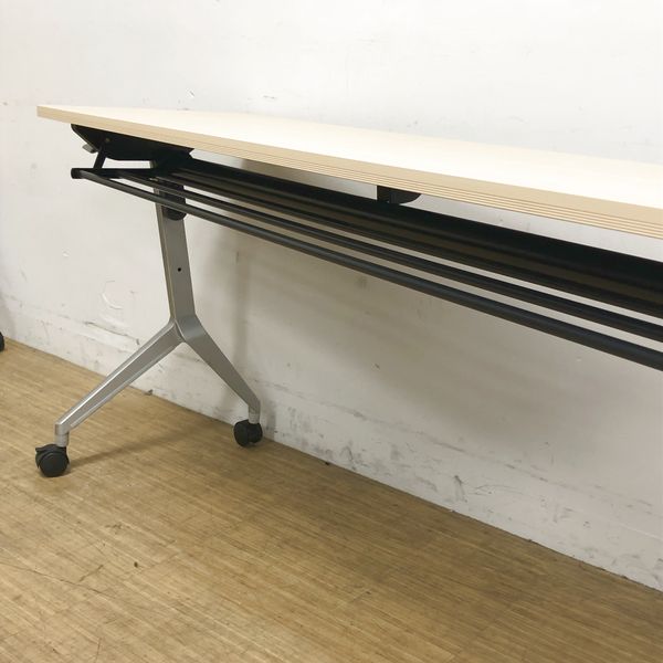 【2024年製!綺麗な状態です!】コクヨ リーフライン サイドスタックテーブル 木目ナチュラル 幕板あり 会議机 収納 折り畳みテーブル セミナー用 福岡 中古家具 安い 九州最大級《オフィスバスターズ福岡博多店は、福岡を拠点として、日本全国へ中古オフィス用品・オフィス家具を提供しております》