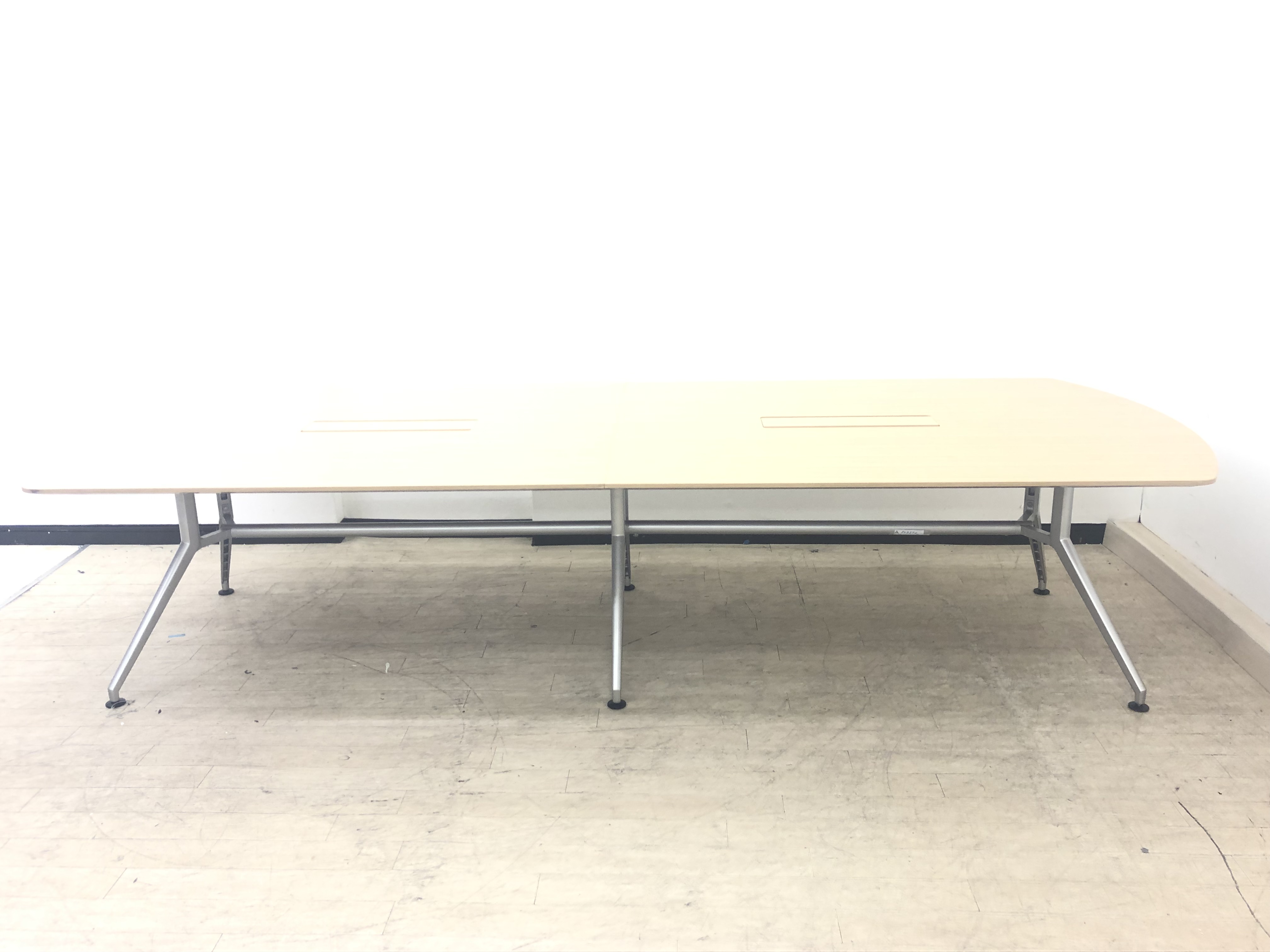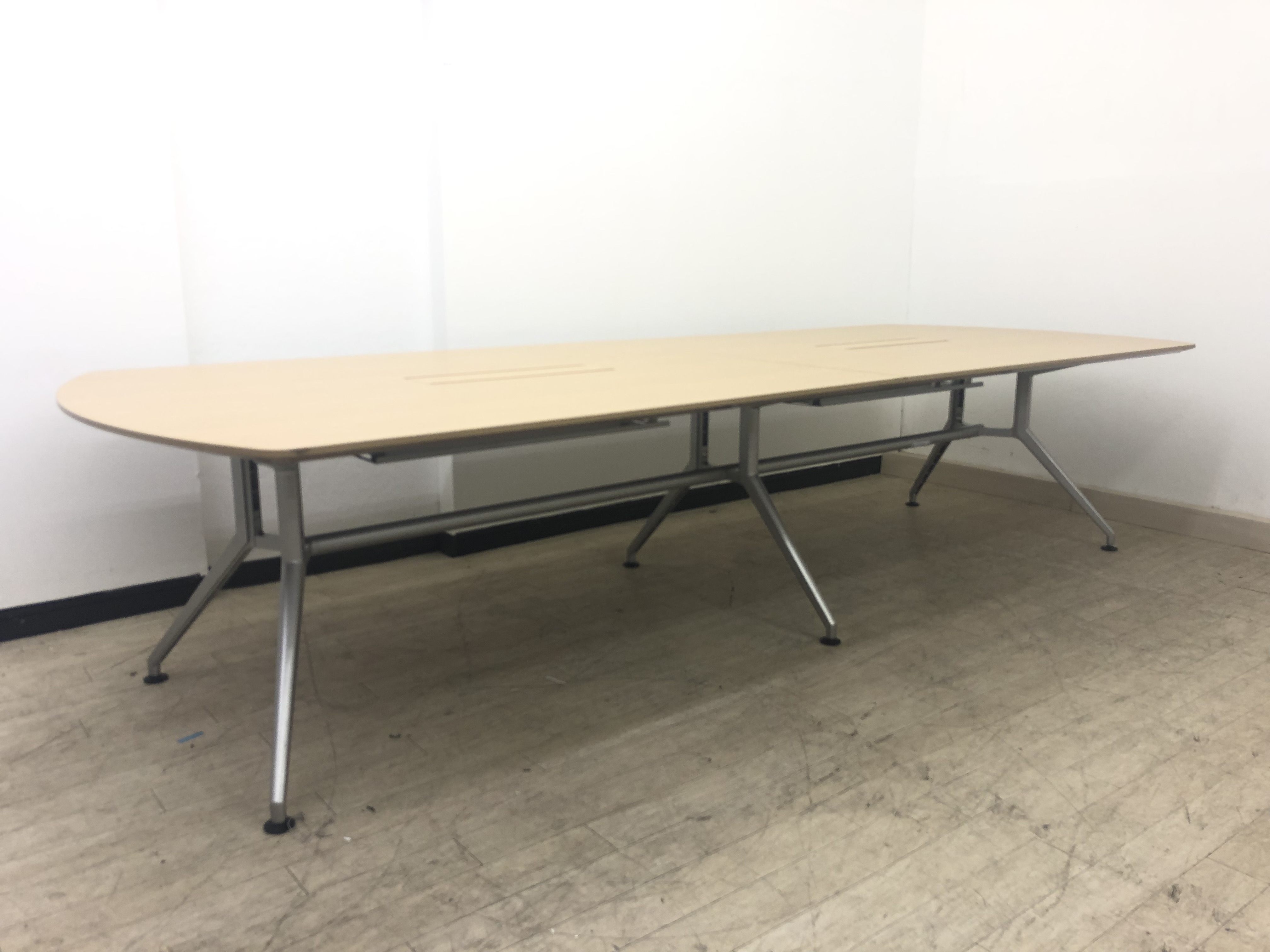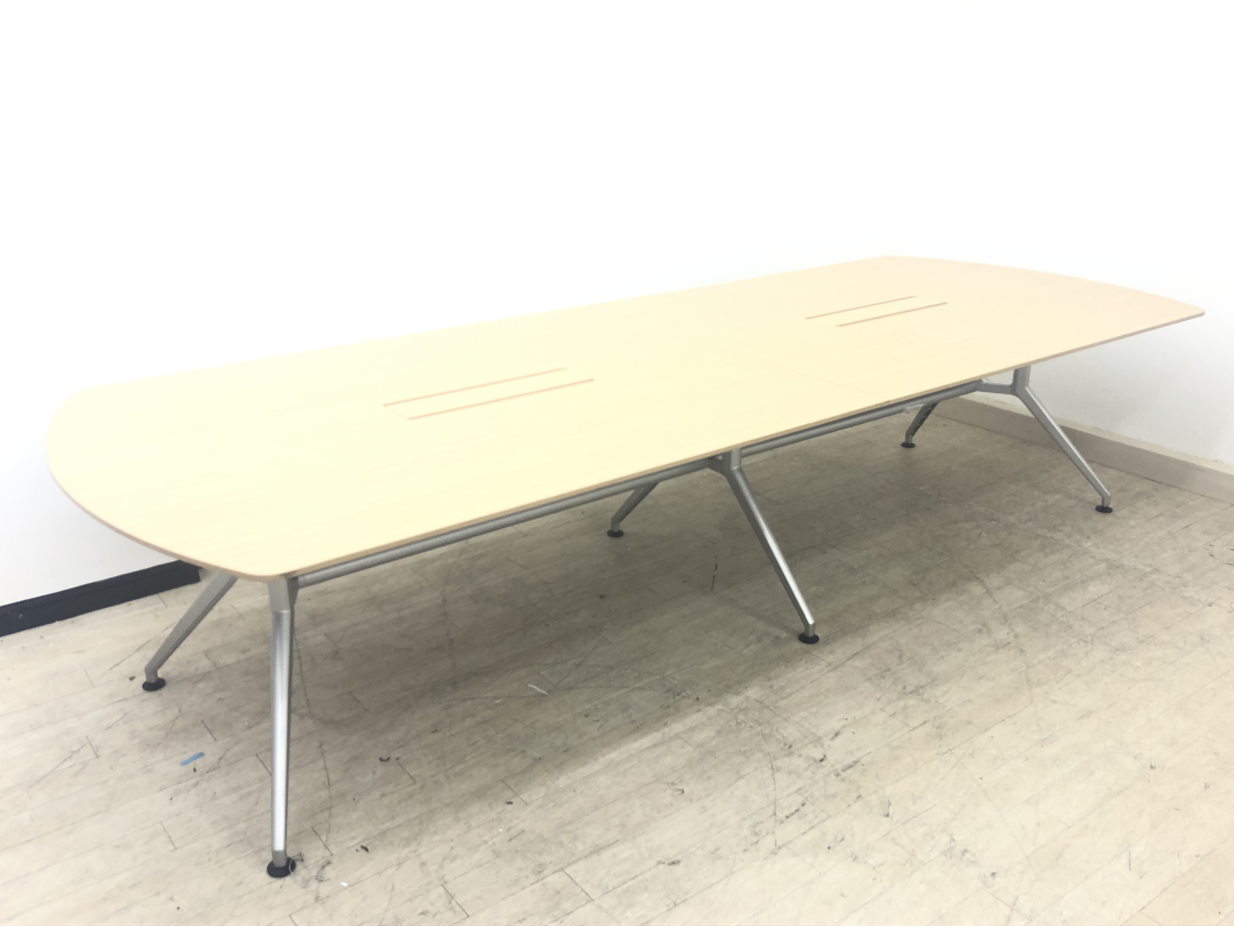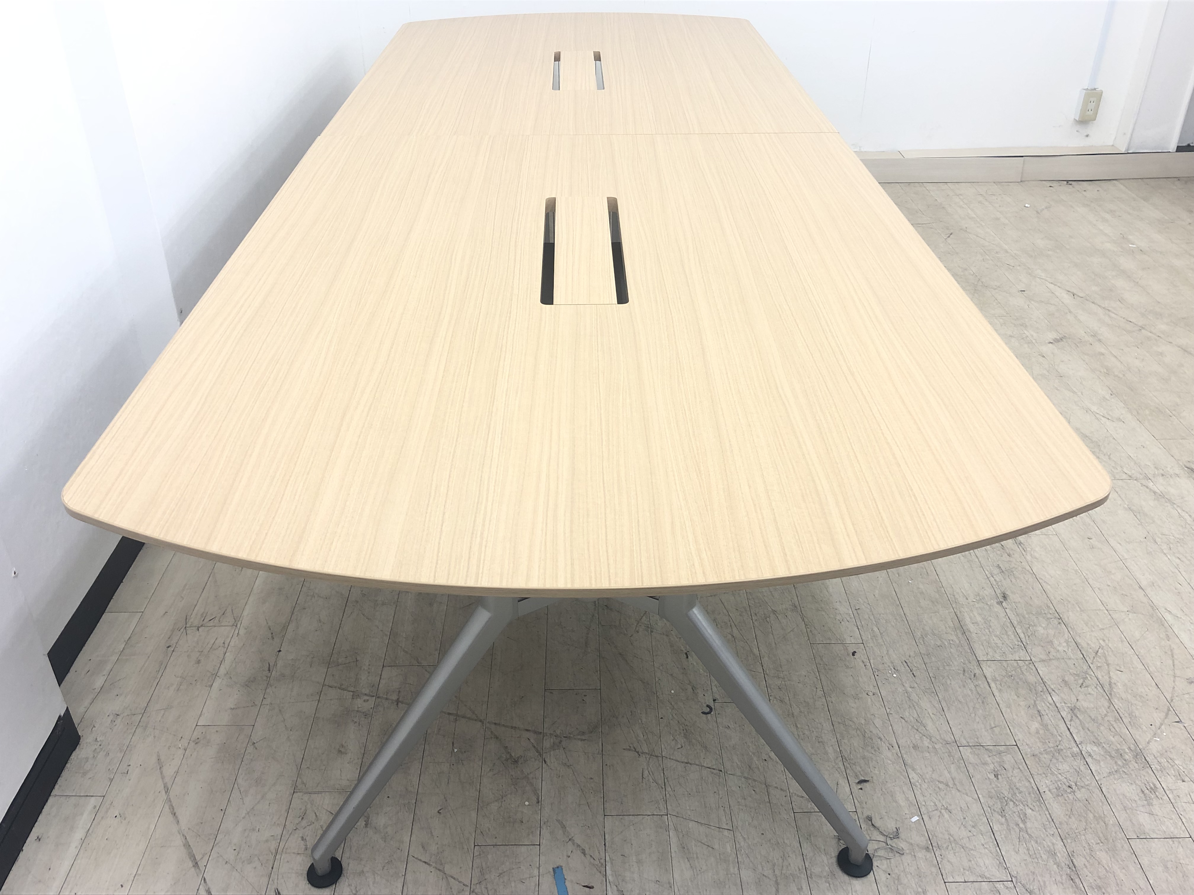 【会議室だけでなく休憩室でも!6~8名様対応・大型テーブル】■イトーキ(ITOKI) DDDシリーズ ミーティングテーブル 会議テーブル 幅2400×奥行900mm ■木目ナチュラル天板 脚シルバー色 オフィスバスターズ東大阪店