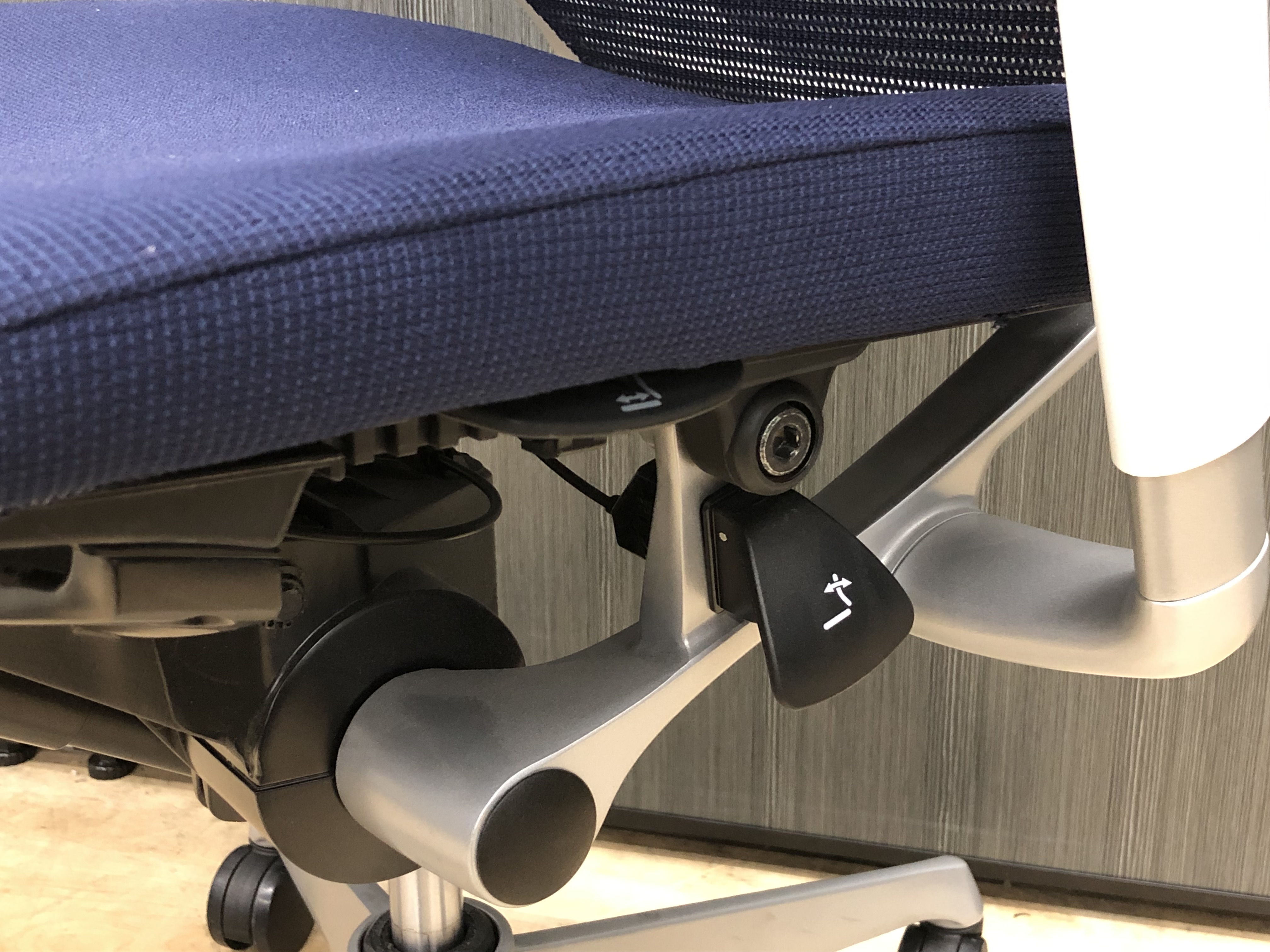 【ベストなポジションが得られる先進設計!長時間の着座でも疲れにくい!】■オカムラ バロンチェア 可動肘付 ブルー ※フレームに日焼けがあるためお安く! 【Okamura Baron】【在庫入替セール品!】