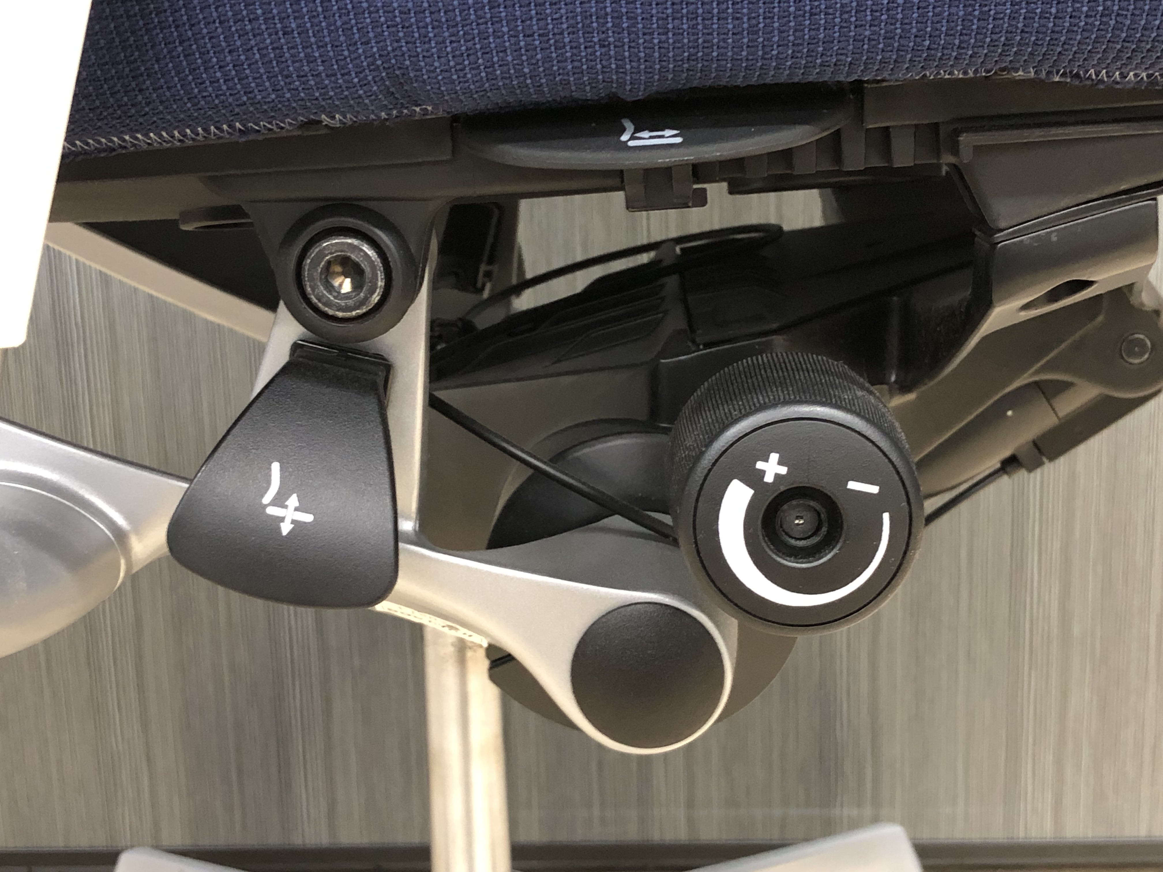 気に入っているのはリクライニング調整の自由さです。同じオカムラ社製の上位モデルや下位モデルも、角度が5段階程度の固定位置だったり、リクライニング強度も4段階だったりしますが、バロンチェアはどちらも無段階。つまり完全に好きな位置、好きな強度に調整することができます。