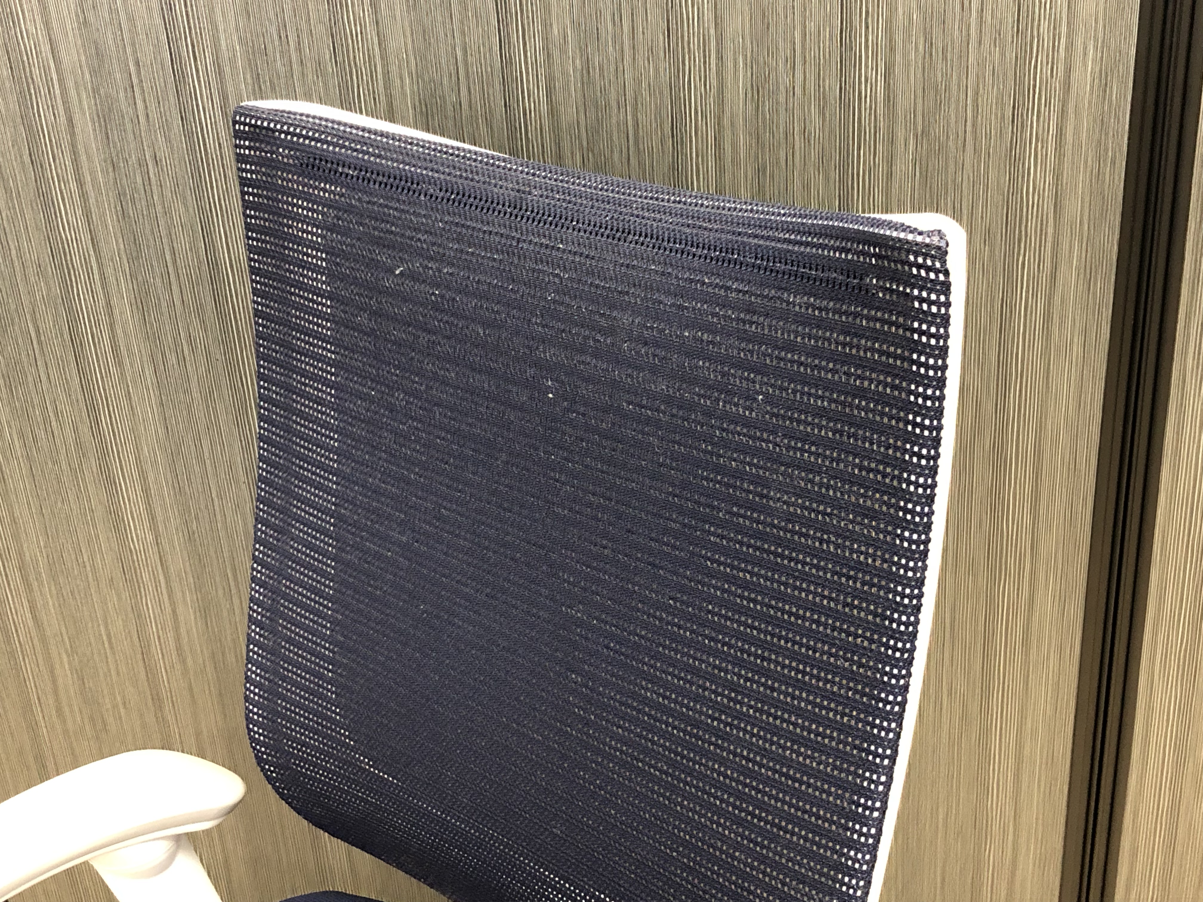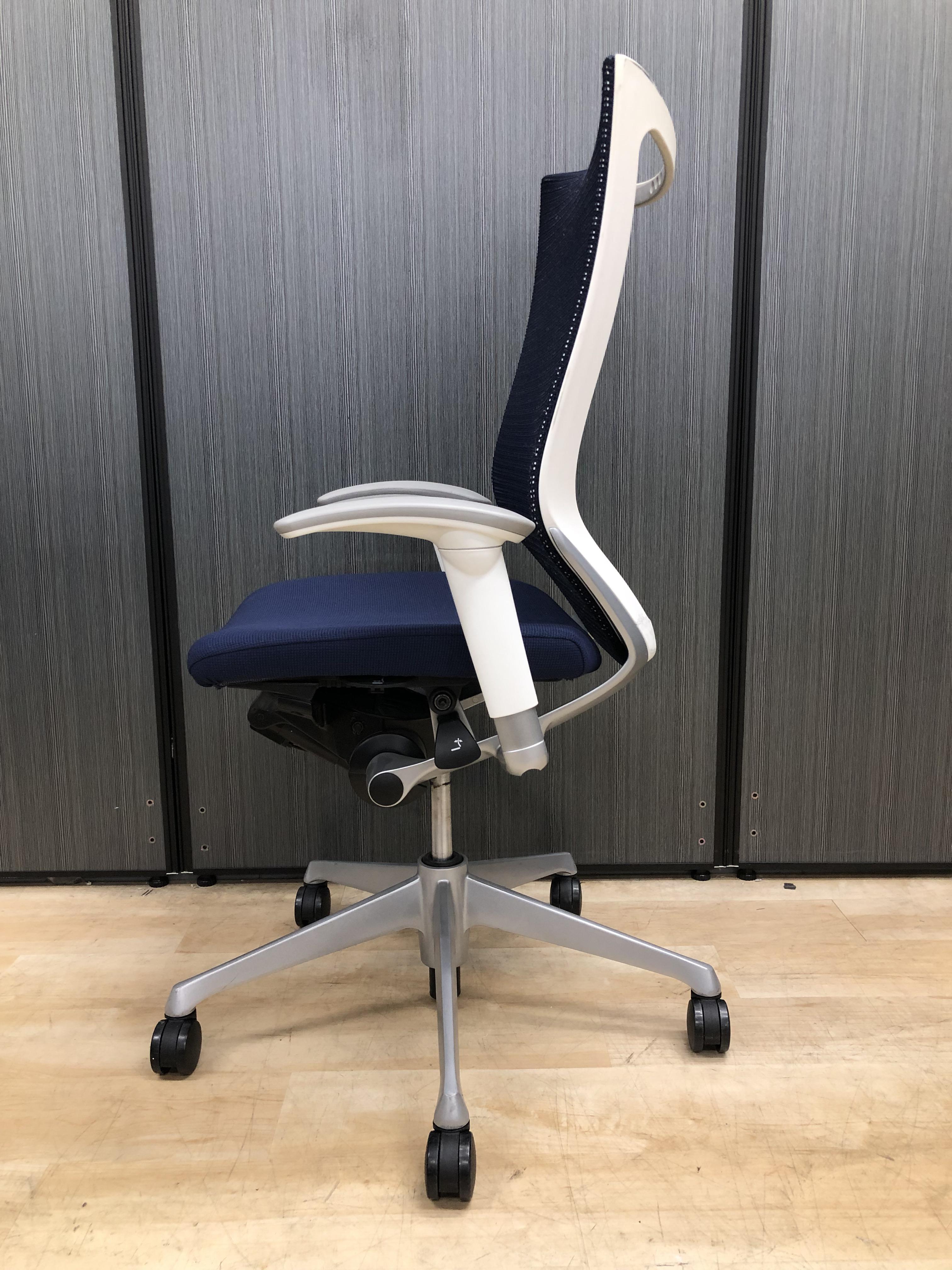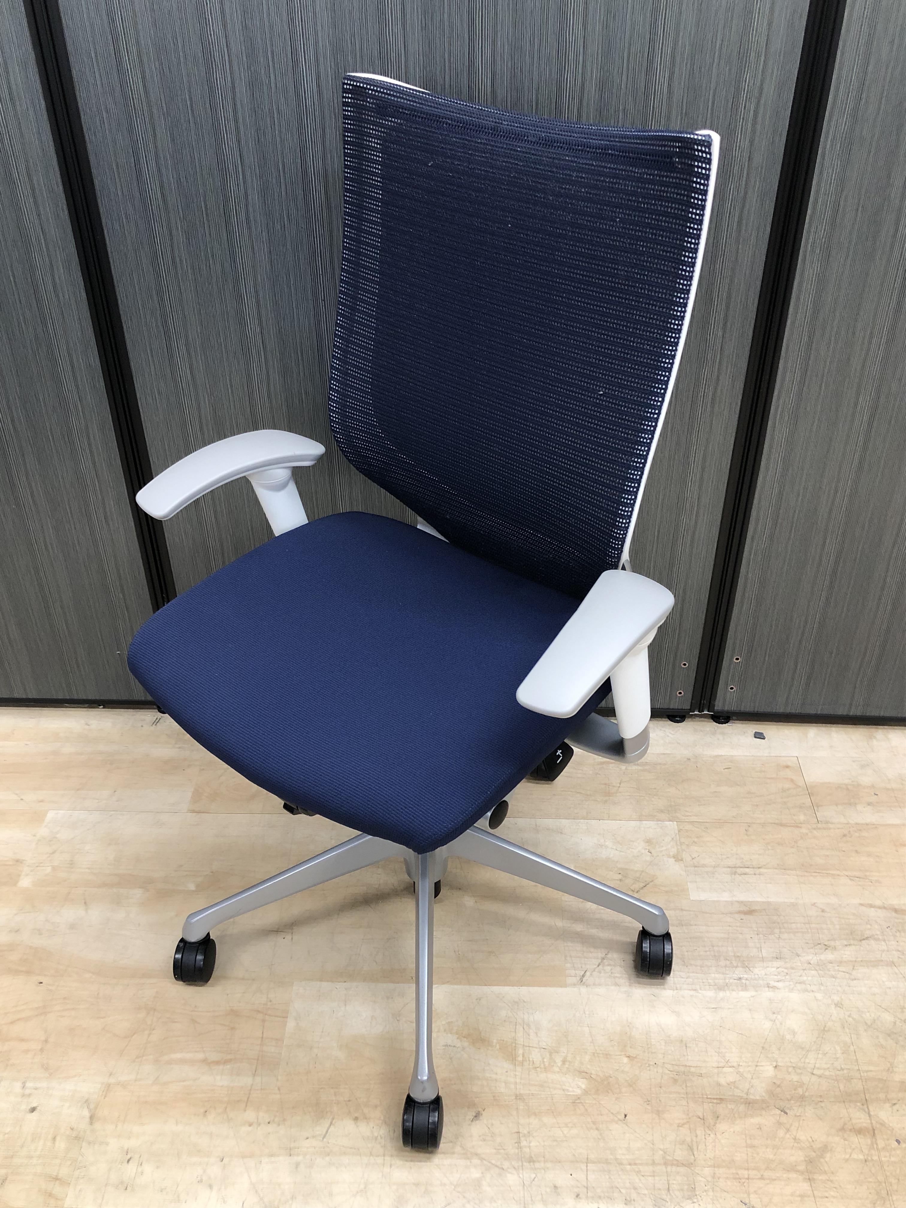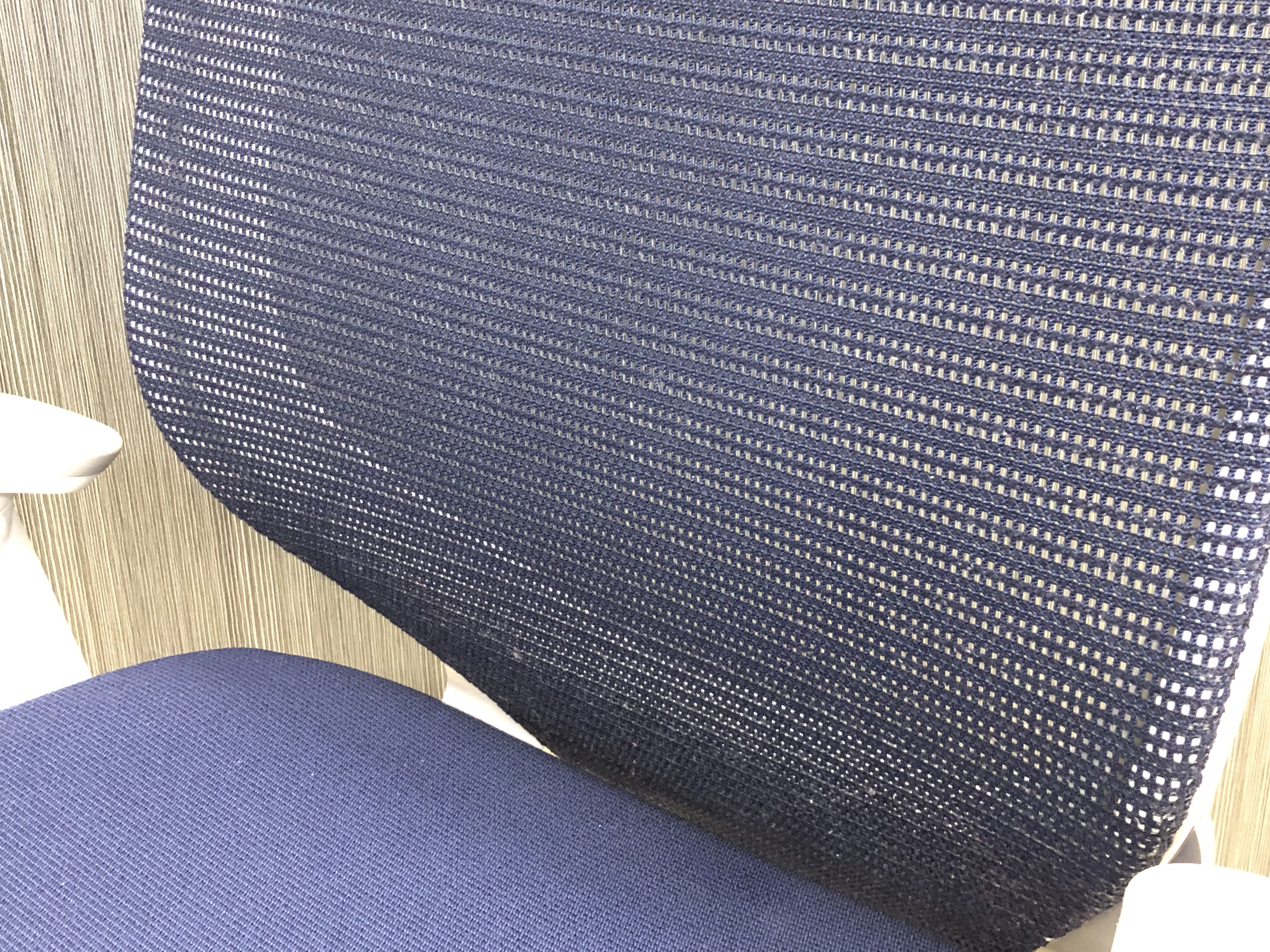 【オフィスの執務室、会議室におすすめ!】■オカムラ(okamura)製 バロン(Baron)チェア 肘付き ハイバック 背面メッシュ ■可動肘 ■ダークブルー × ホワイトシェル【硬めの座面が大人気!国産メッシュチェアの代表格!】【状態良好品!】