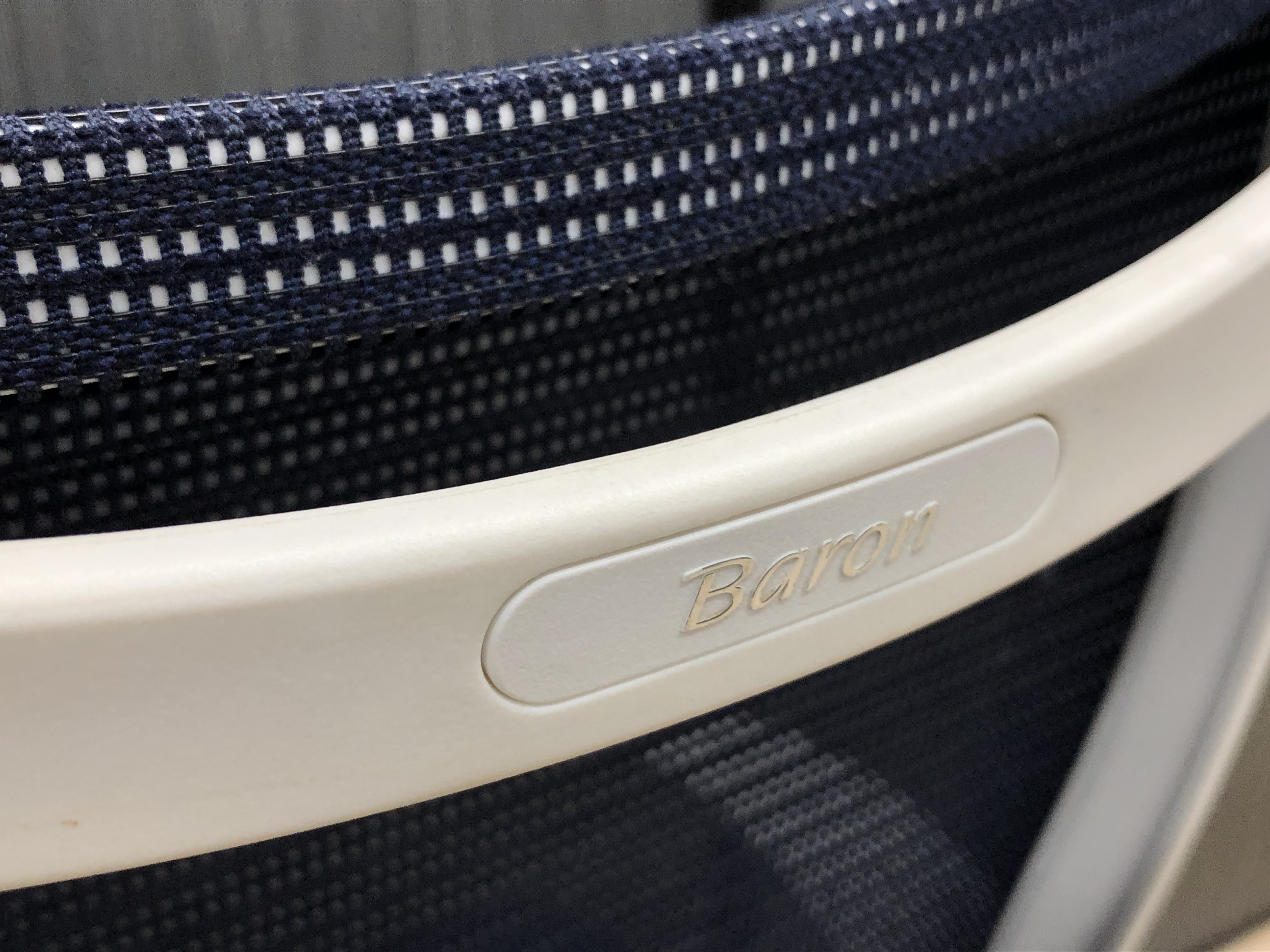 発売当時、既に人気を博していたオカムラの高級チェア、コンテッサから手元で座高調整ができるスマートオペレーション機能を取り除くなどしてリーズナブルにしたのがバロンです。その際に少しだけコンパクト化されました。そのことが、日本人の体格、日本のオフィス、家庭環境に適し、国内で多くのシェアを獲得する要因の一つになったのではないかと思います。