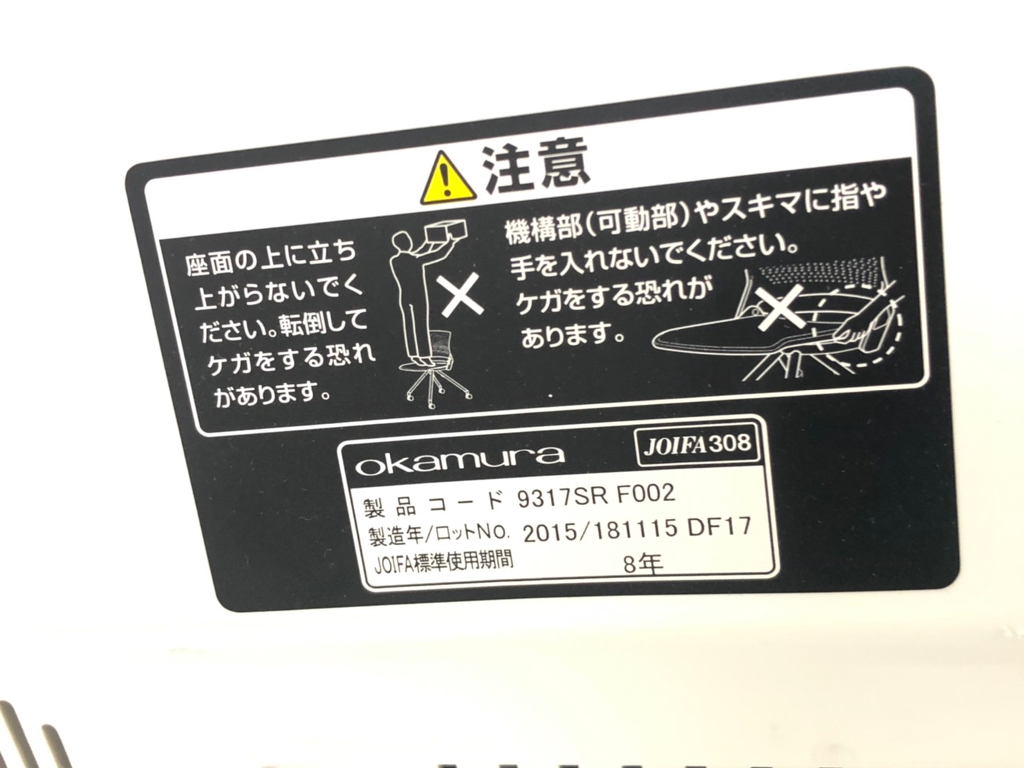 - 不具合多数そのチェアの本来の効用を果たすための機能に不具合ある。(例、オフィスチェアの上下昇降キャスター付きミーティングチェアのキャスター使用不可のような不 具合)