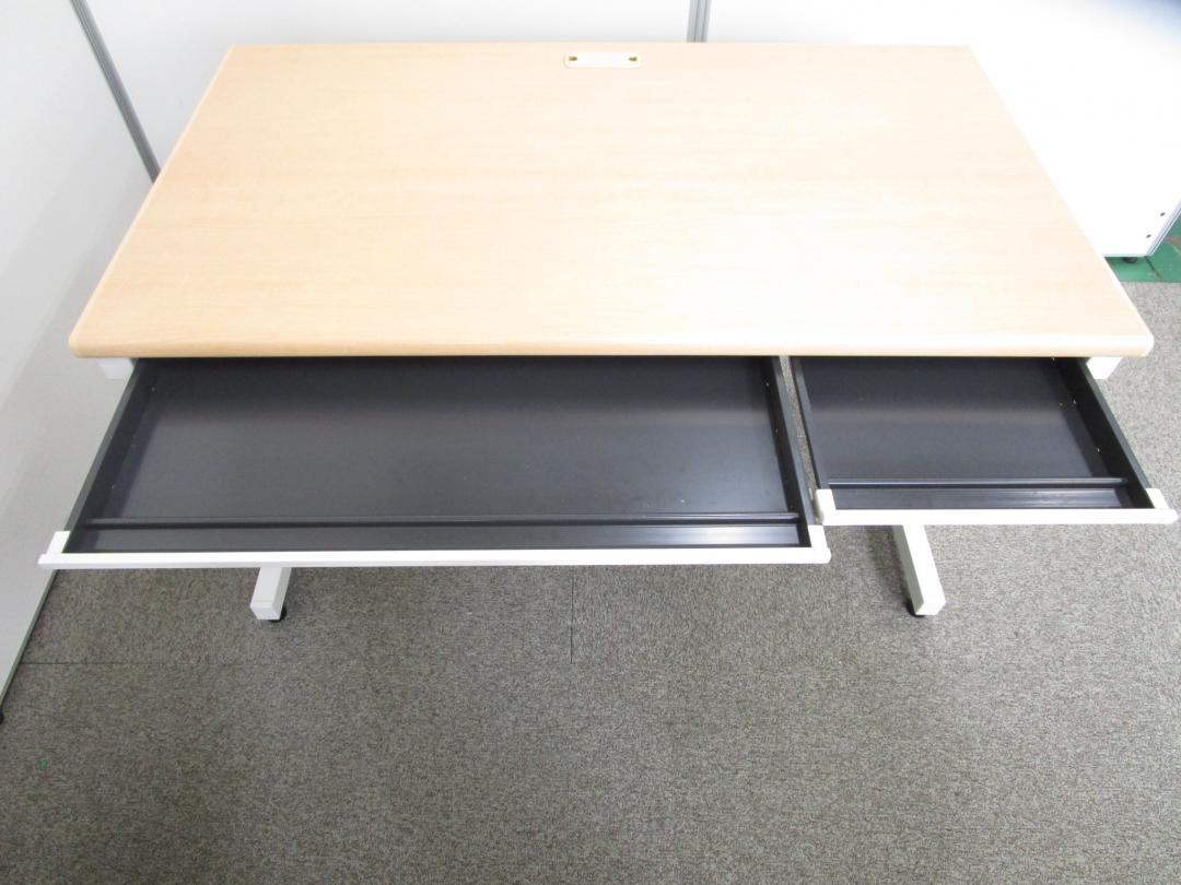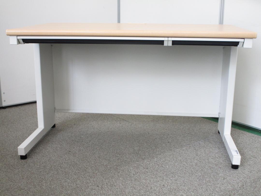 【ベーシックな使いやすさ・ローコストの引き出し付きデスク!】■プラス (PLUS) 製 フラットラインシリーズ 平デスク W1200mm 引き出し付(日焼け有) ■本体:ホワイト 天板:木目ナチュラル(メープル調) 【弊社使用欄:A01040783/A01035962】