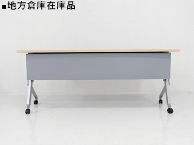 【数揃います!】オカムラ製 フラプター フォールディングテーブル【ネオウッドライト】【幕板付き】【幅1800mm】【奥行き450mm】【地方倉庫在庫品】【RA】- 在庫数