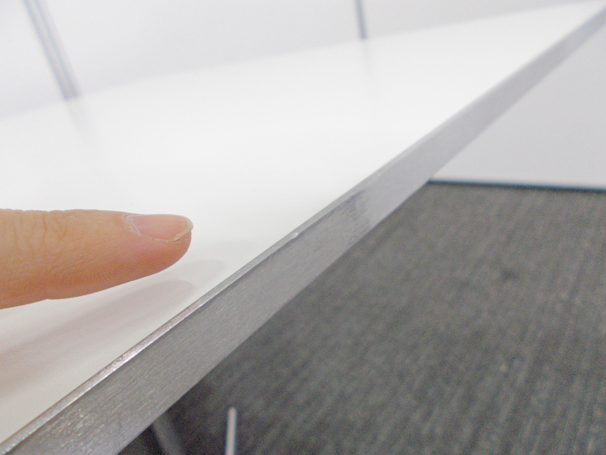 - 一部不具合あり天板歪み、アジャスター無し、キャスター使用不可ようなそのテーブルの本来の効用を果たすための機能以外の一部が使用不可な状態。(例、キャスターロッ ク機能使用不可、棚板無し等がある。)