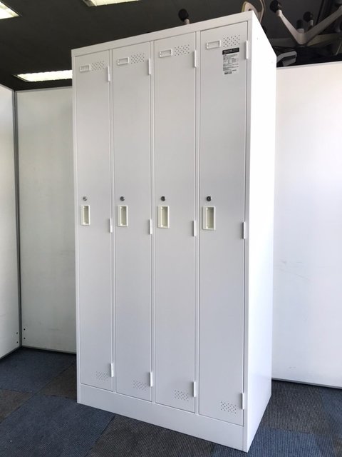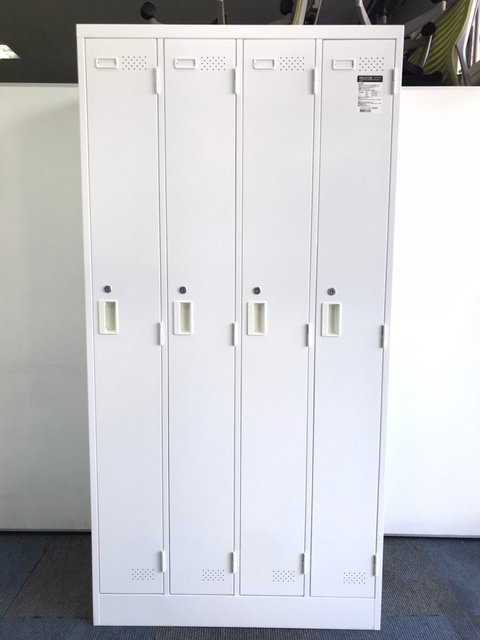 【取っ手日焼け有り】定番の4名用ロッカー/ホワイト/オフィスの必需品- 千葉店