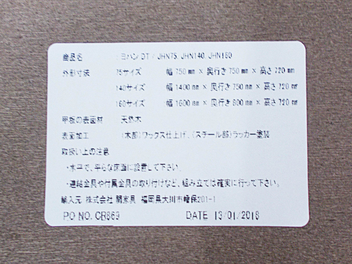 - 一部不具合あり天板歪み、アジャスター無し、キャスター使用不可ようなそのテーブルの本来の効用を果たすための機能以外の一部が使用不可な状態。(例、キャスターロッ ク機能使用不可、棚板無し等がある。)