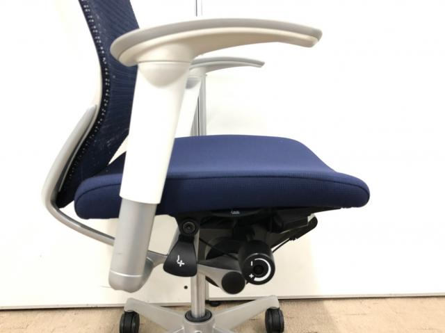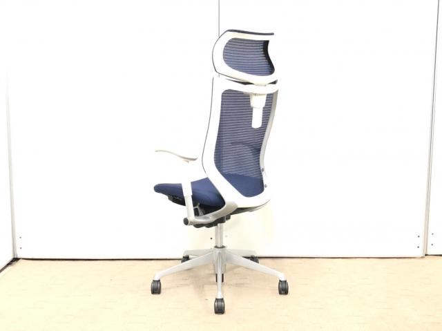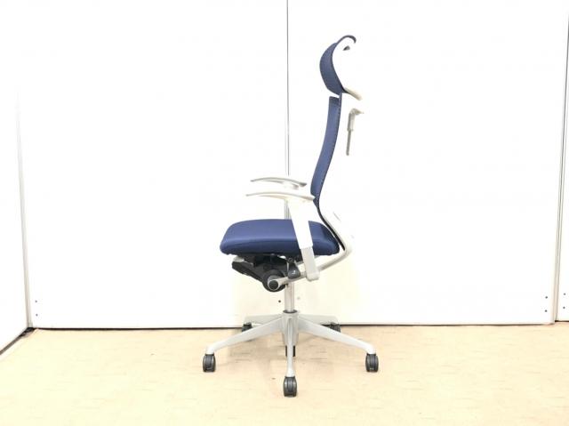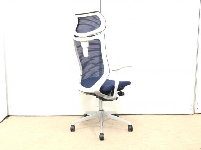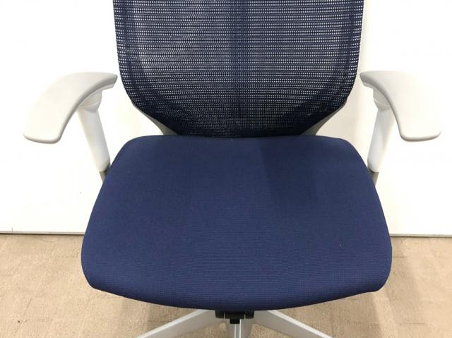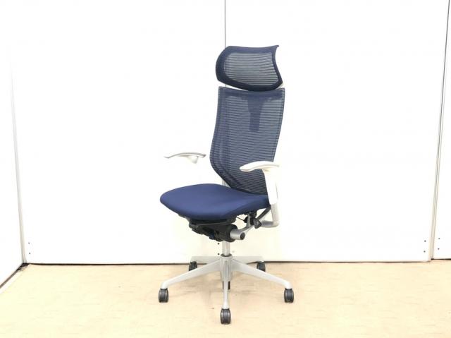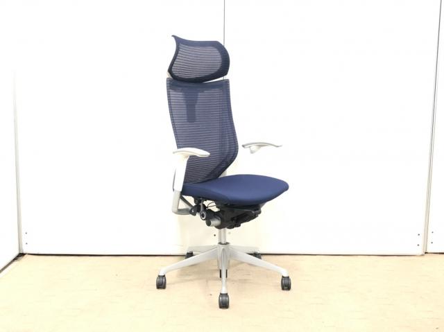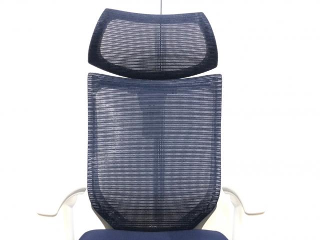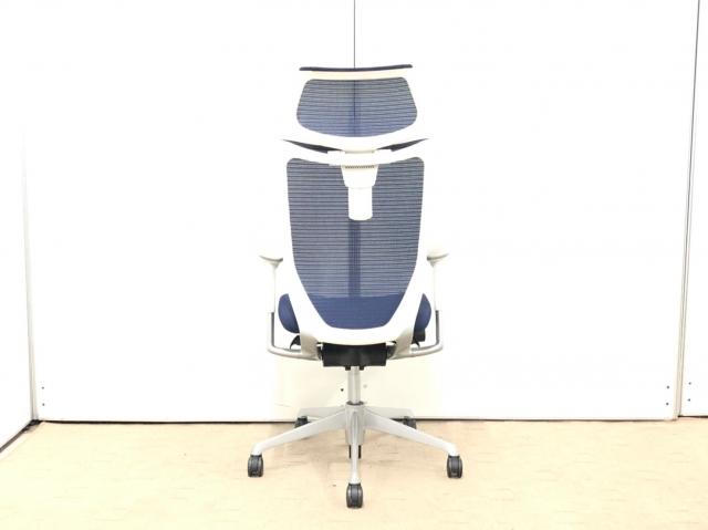 【新品ヘッドレスト付き】オカムラ/バロン/ブルー×ホワイト/可動肘/座面クッション【AD】