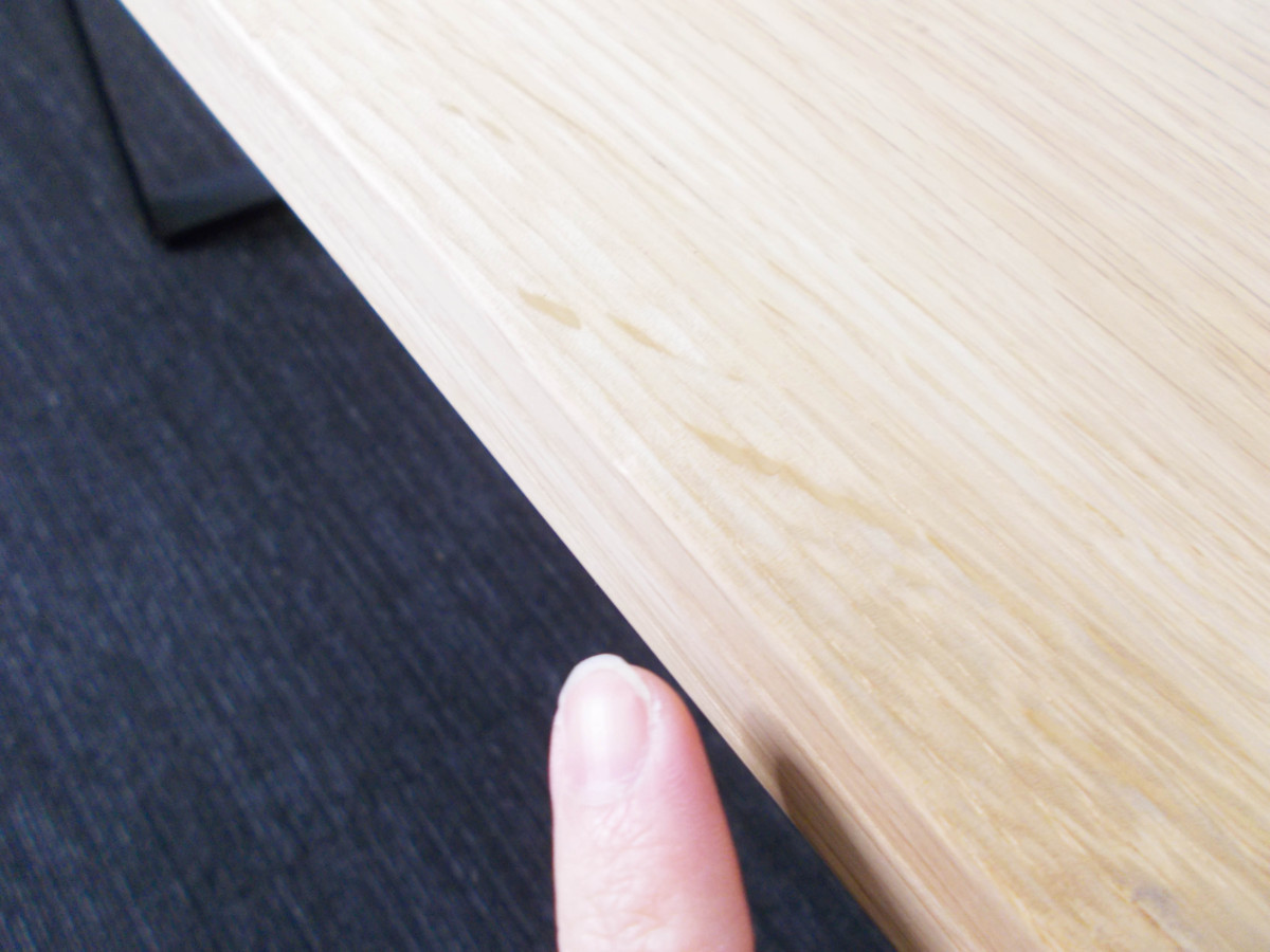 - あり黄ばみ・変色が広い範囲にうっすらある、または濃い黄ばみ・変色が一部ある。(例、天板、幕板、棚板、サイド部分、脚部等にある。)