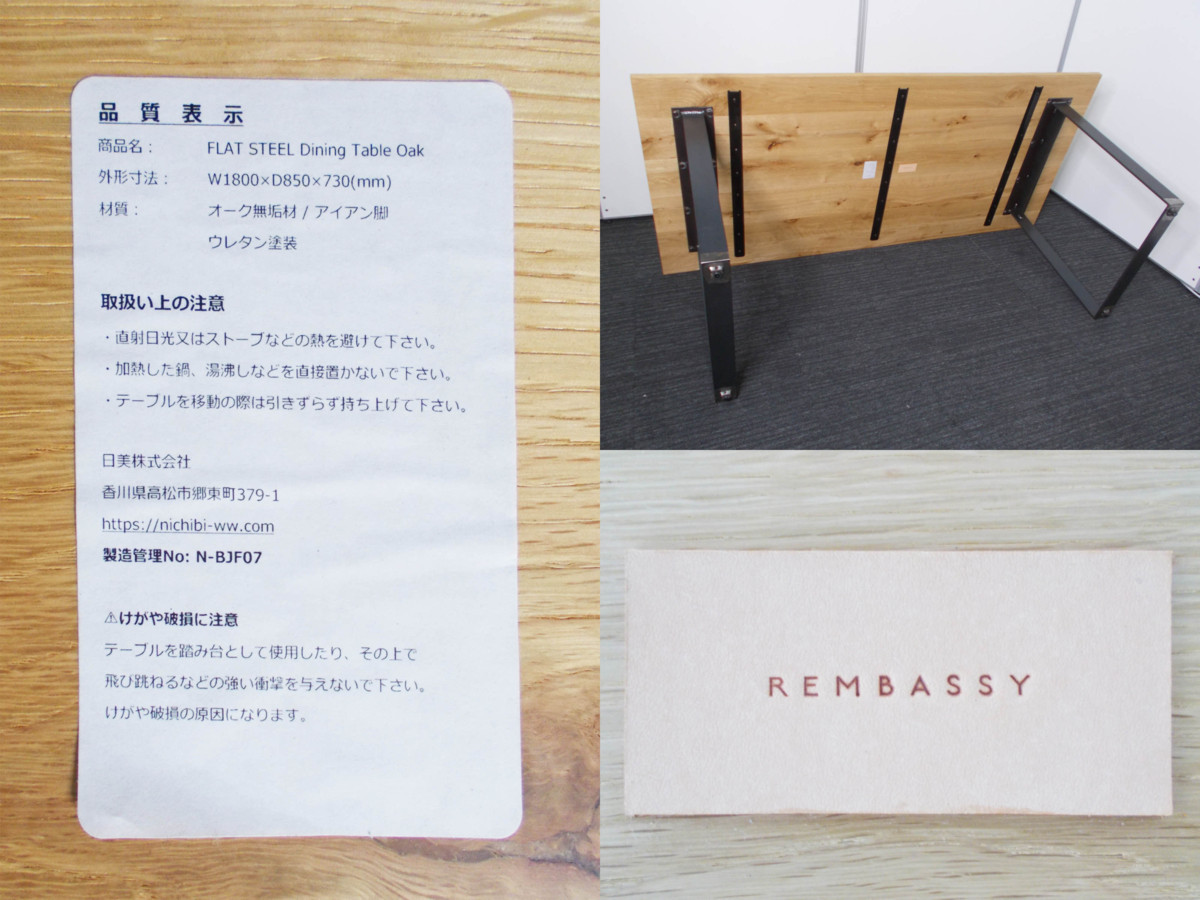 REMBASSY /レンバシー FLAT STEEL dining table / フラットスチール ダイニングテーブル ナラ無垢材- デザイナーズ家具センター