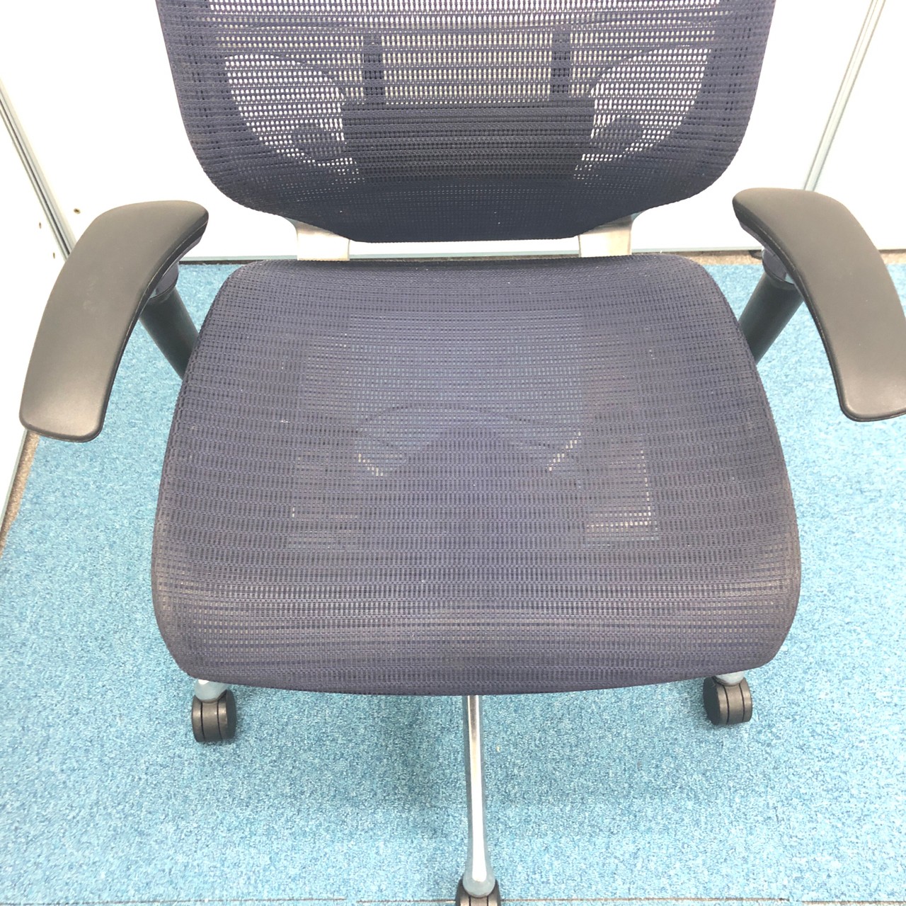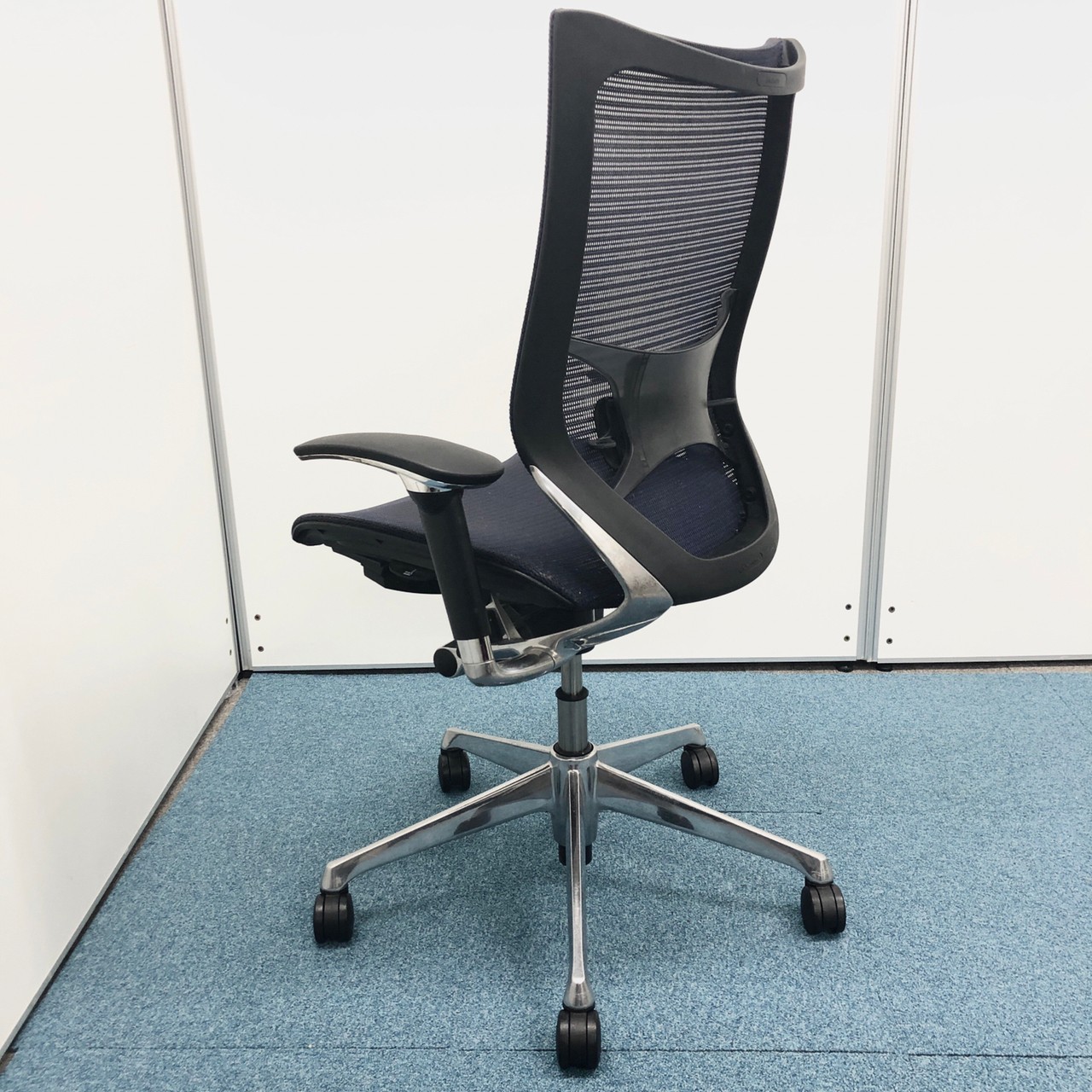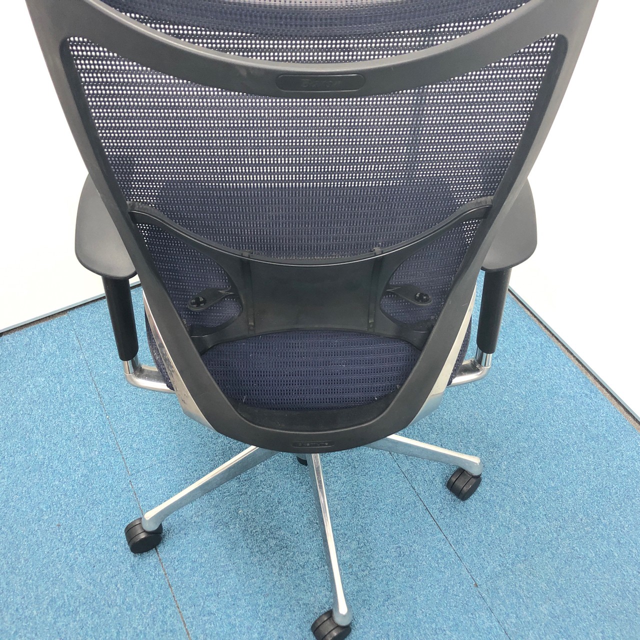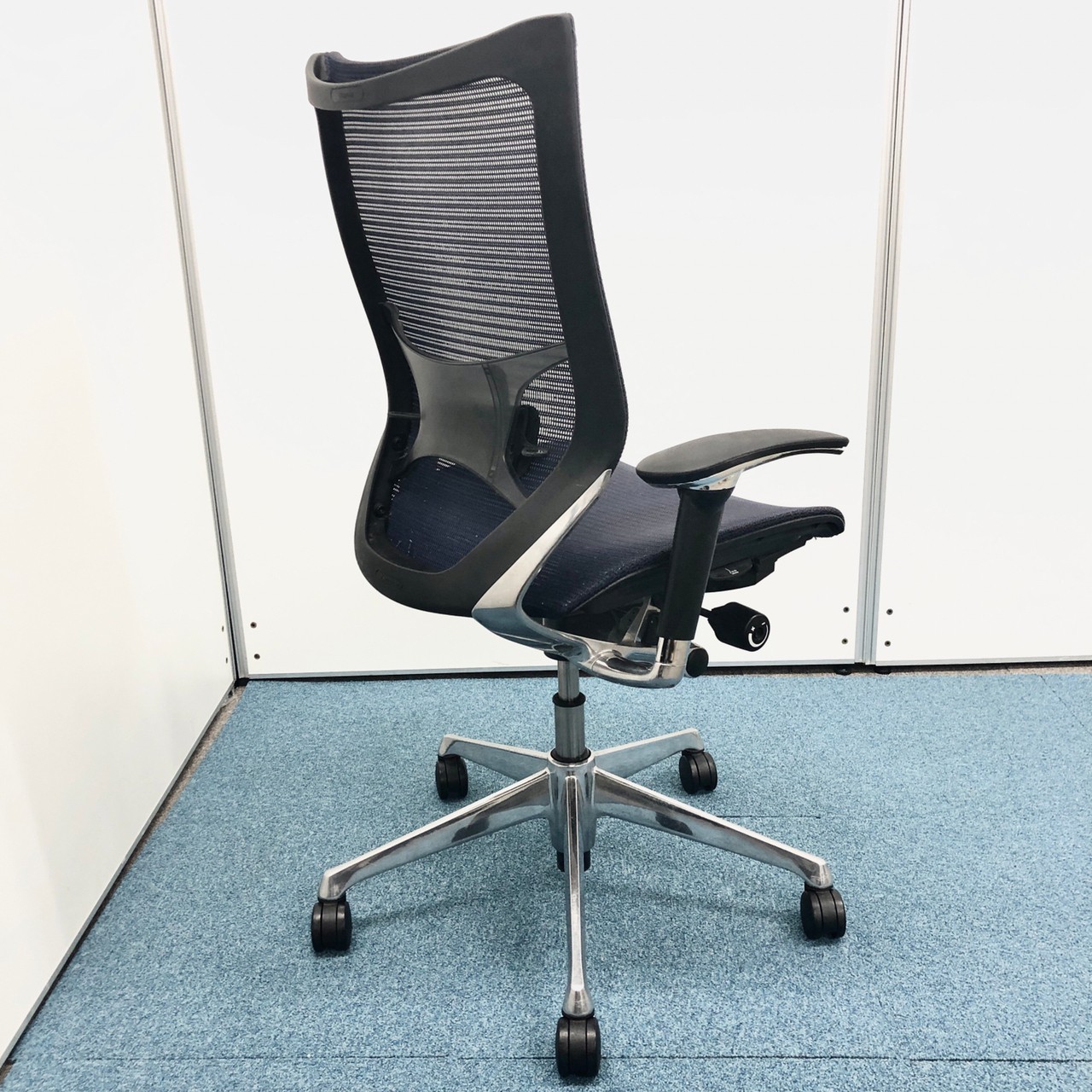【腰を痛めないランバーサポート付き!】オカムラ製/バロンチェア/ネイビー/ハイバック【人気の背面メッシュ】- 日本橋店