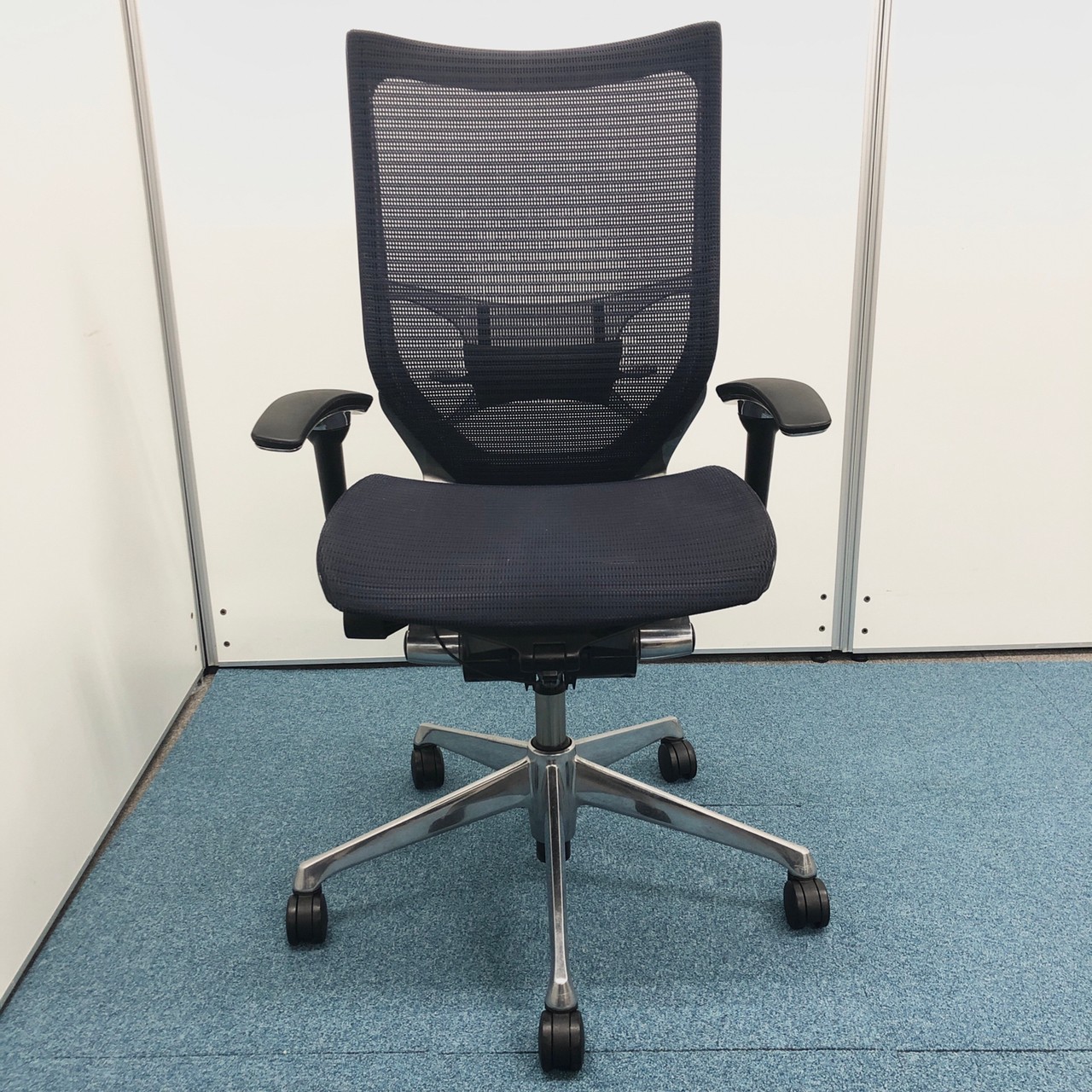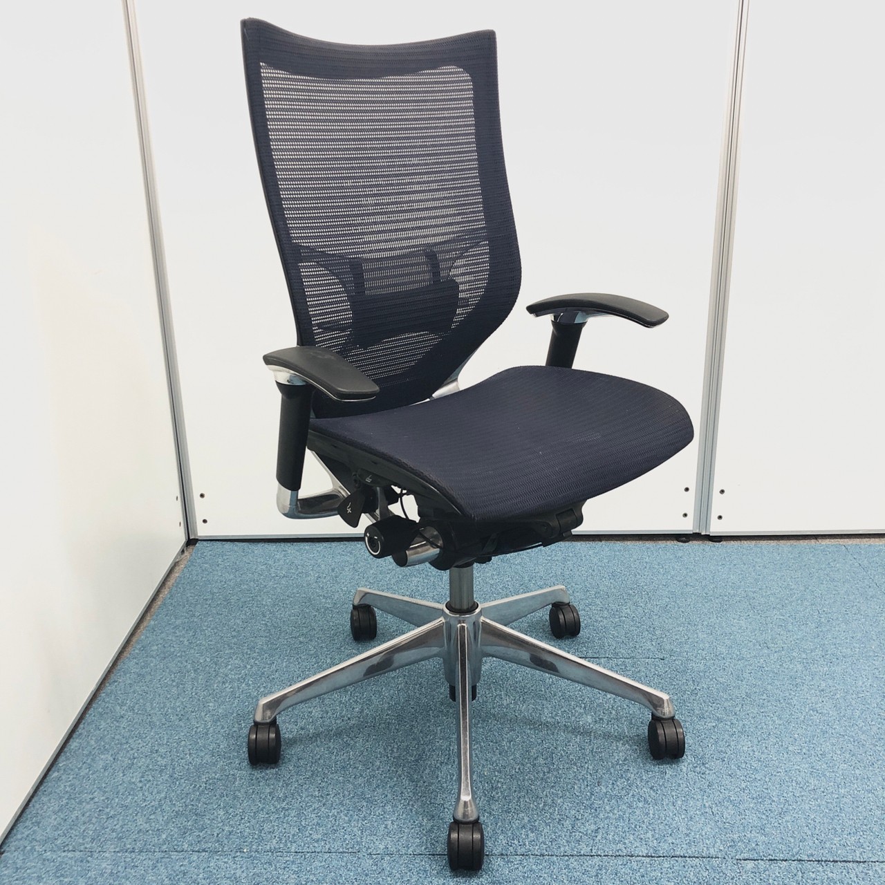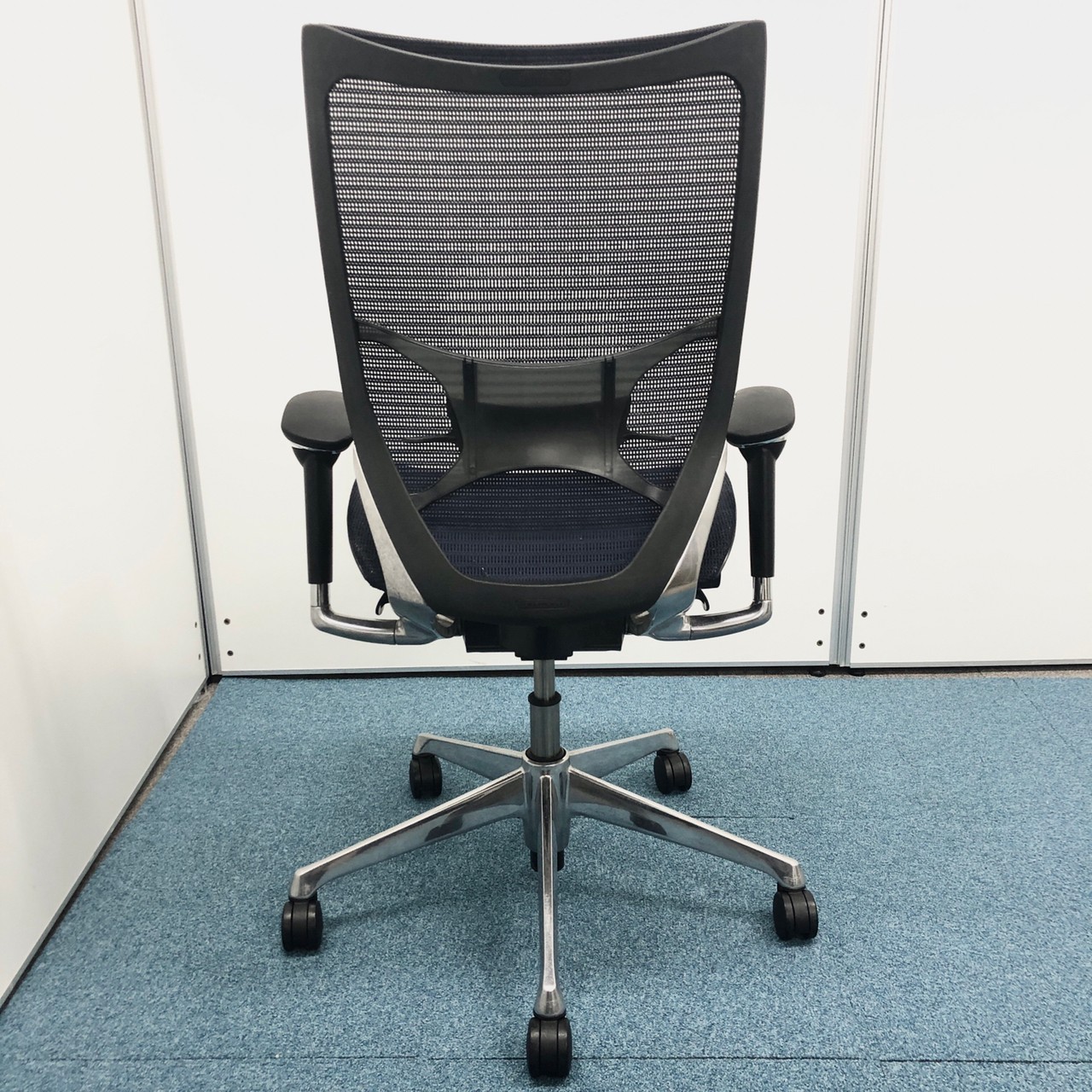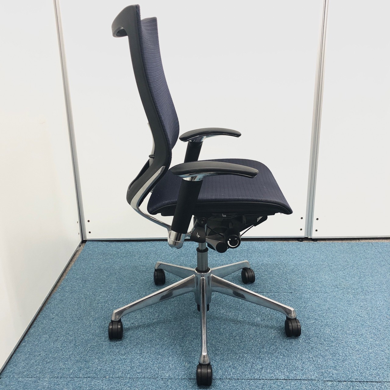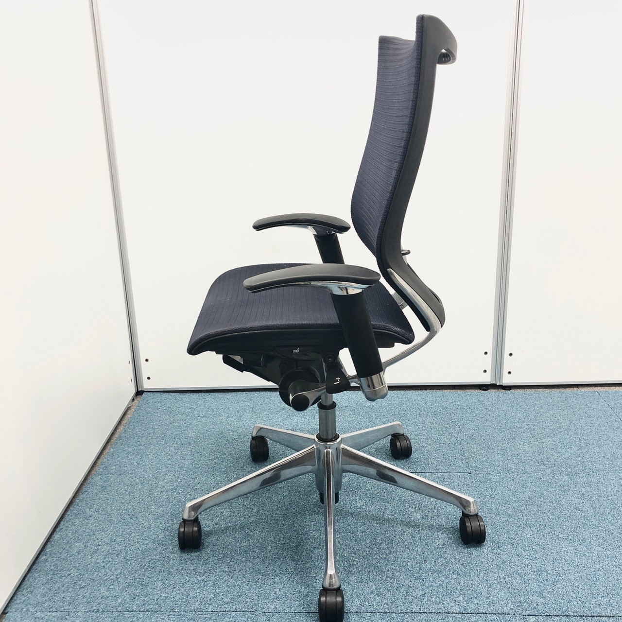 【腰を痛めないランバーサポート付き!】オカムラ製/バロンチェア/ネイビー/ハイバック【人気の背面メッシュ】- 日本橋店