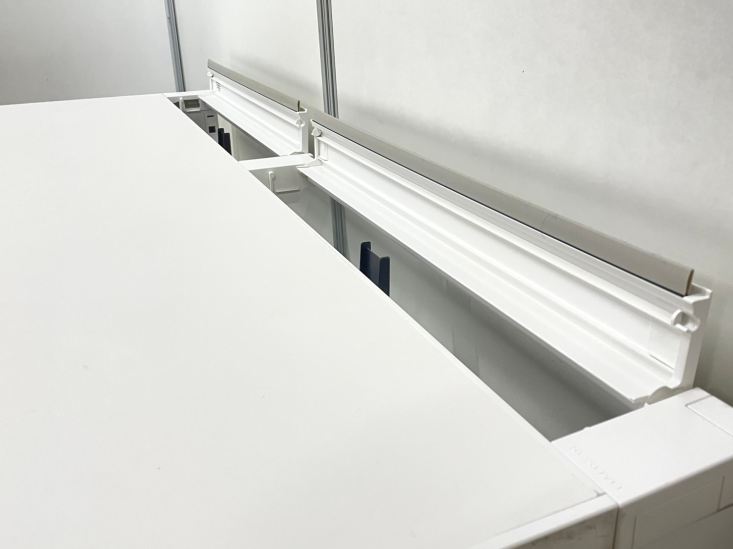 - OAタップや余長コードをコードダクトに収納できます。開閉式の配線カバーで、配線作業が簡単です。