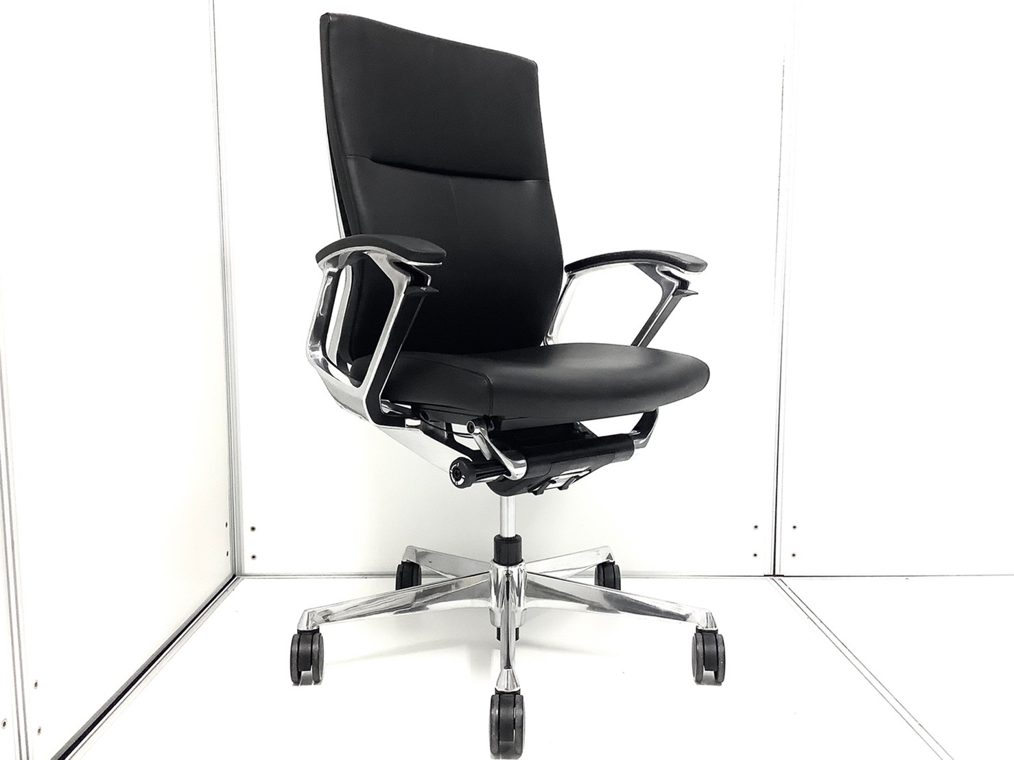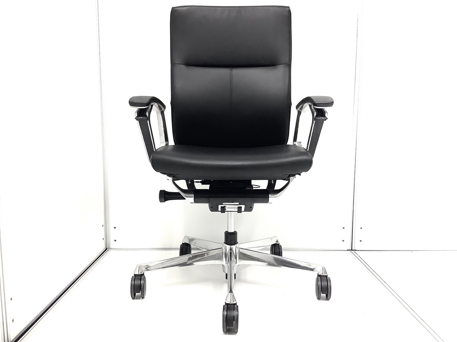 【滑らかで高級感あふれる座り心地が大人気!!】■オカムラ(okamura)製 デュークチェア(DUKE) ハイバック肘付き ■レザー張地 ■固定肘 ■ブラック【弊社使用欄:A01037767】
