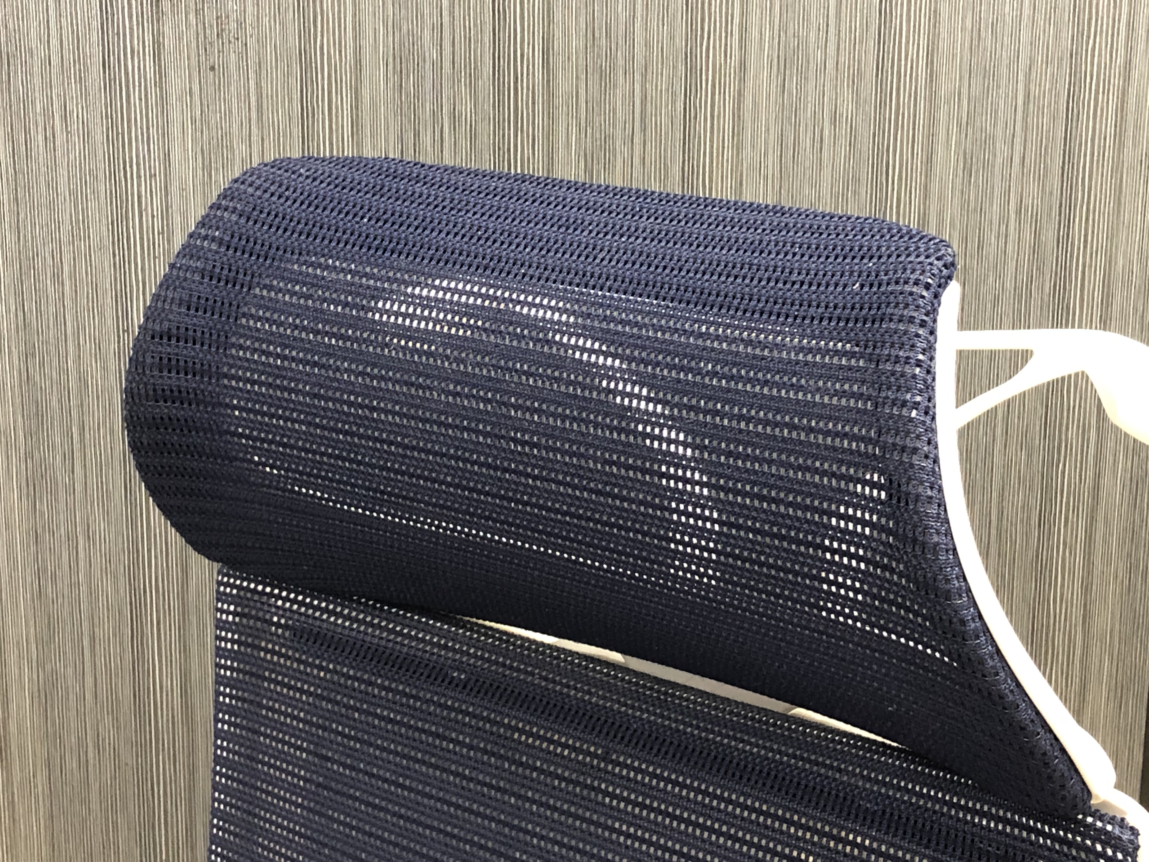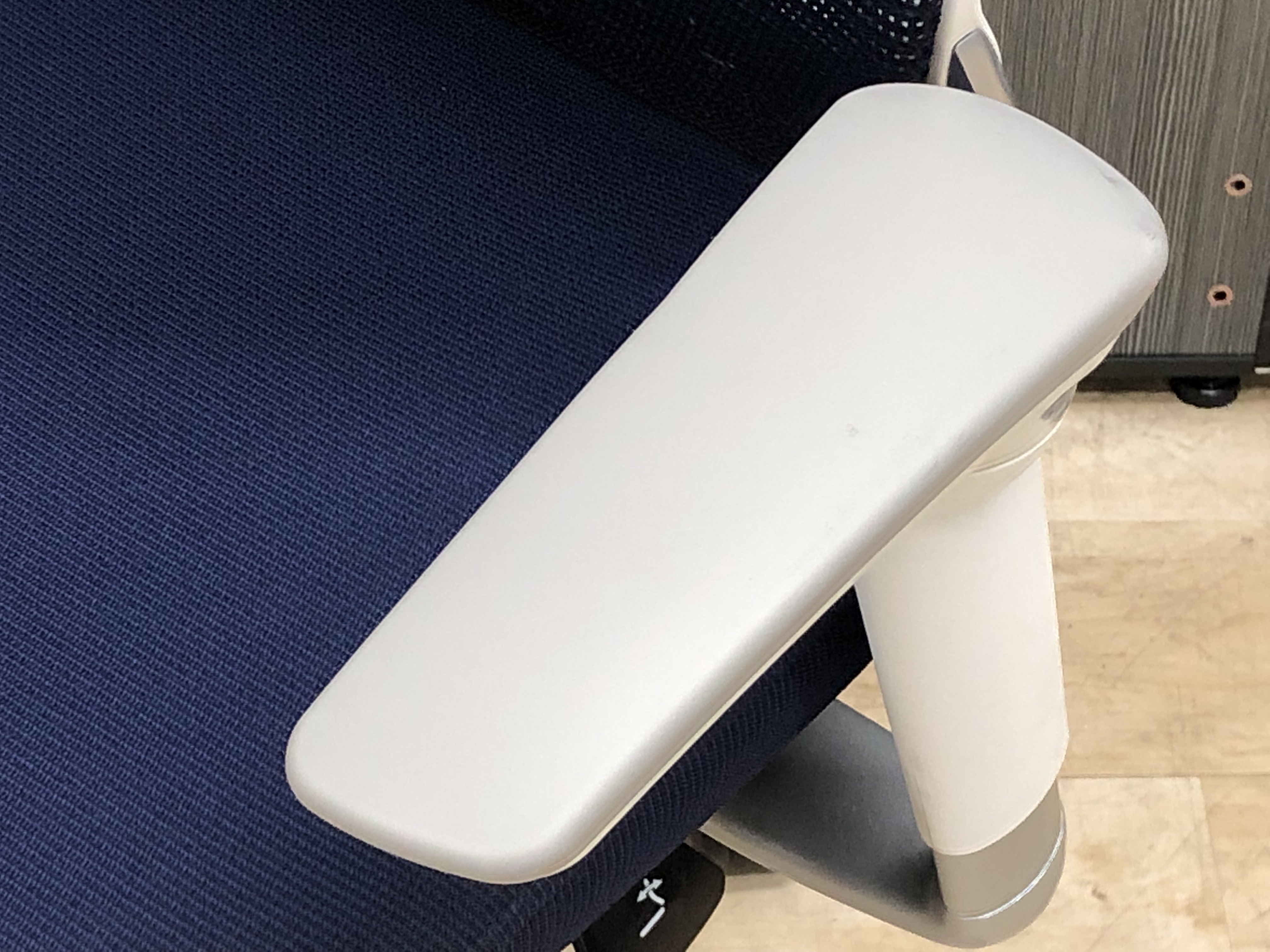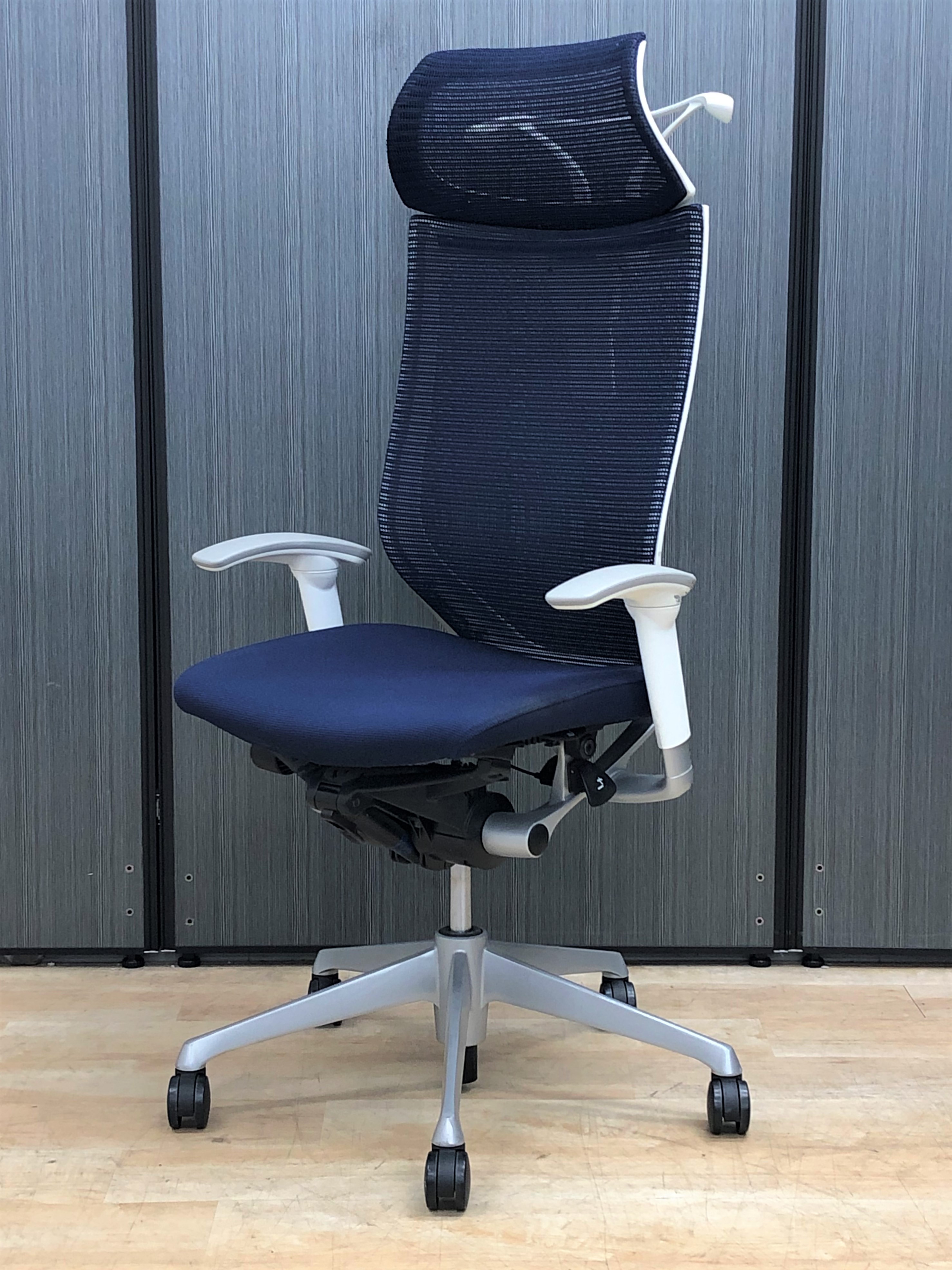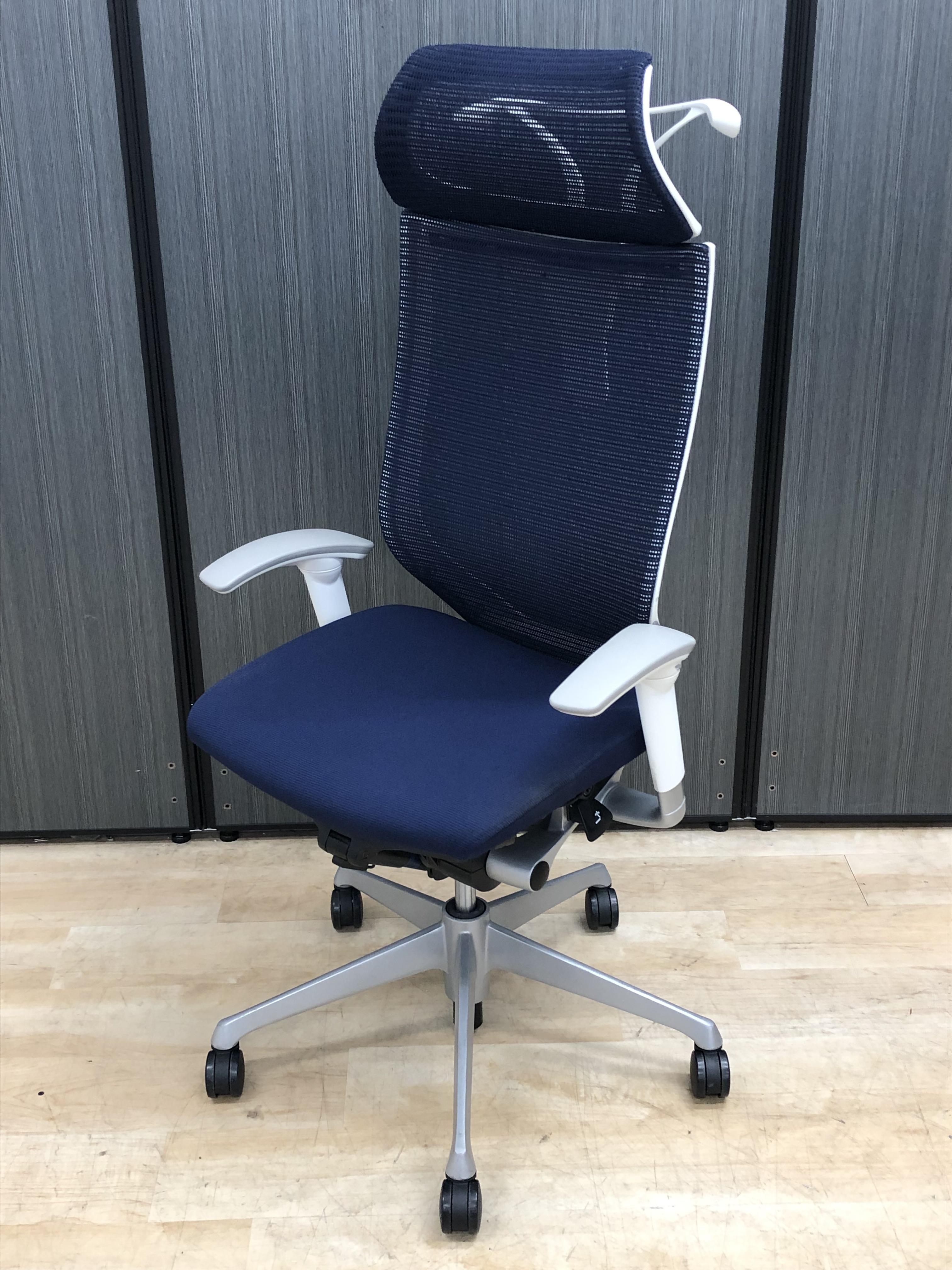 【2脚入荷】【オフィスの執務室、会議室におすすめ!】■オカムラ(okamura)製 バロン(Baron)チェア 肘付き ハイバック 背面メッシュ ■可動肘 ■ダークブルー × ホワイトシェル【硬めの座面が大人気!国産メッシュチェアの代表格!】